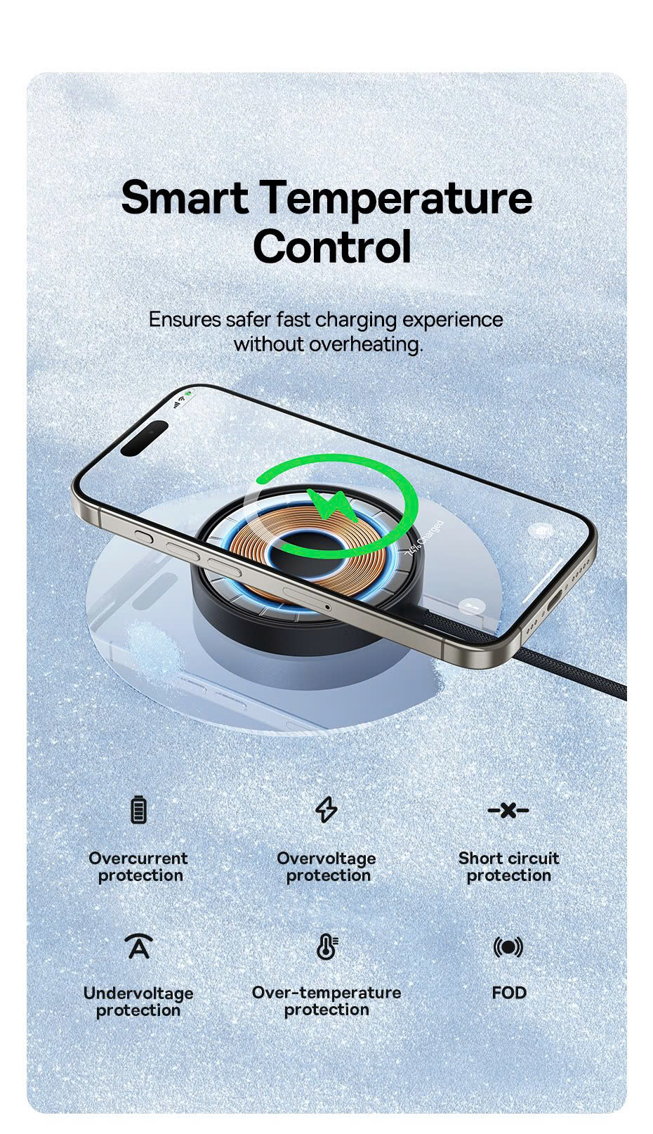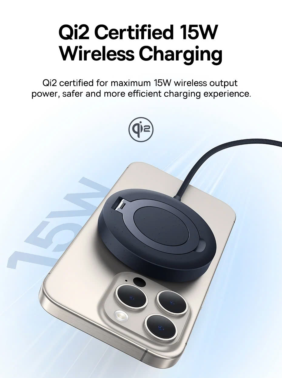 Baseus Simple Mini4 được trang bị công nghệ sạc không dây Qi2, chuẩn sạc tiên tiến giúp tối ưu hóa tốc độ sạc và hiệu suất sử dụng. Công suất tối đa 15W giúp thiết bị của bạn được sạc đầy trong thời gian ngắn hơn mà không gây nóng máy hay ảnh hưởng đến tuổi thọ pin.