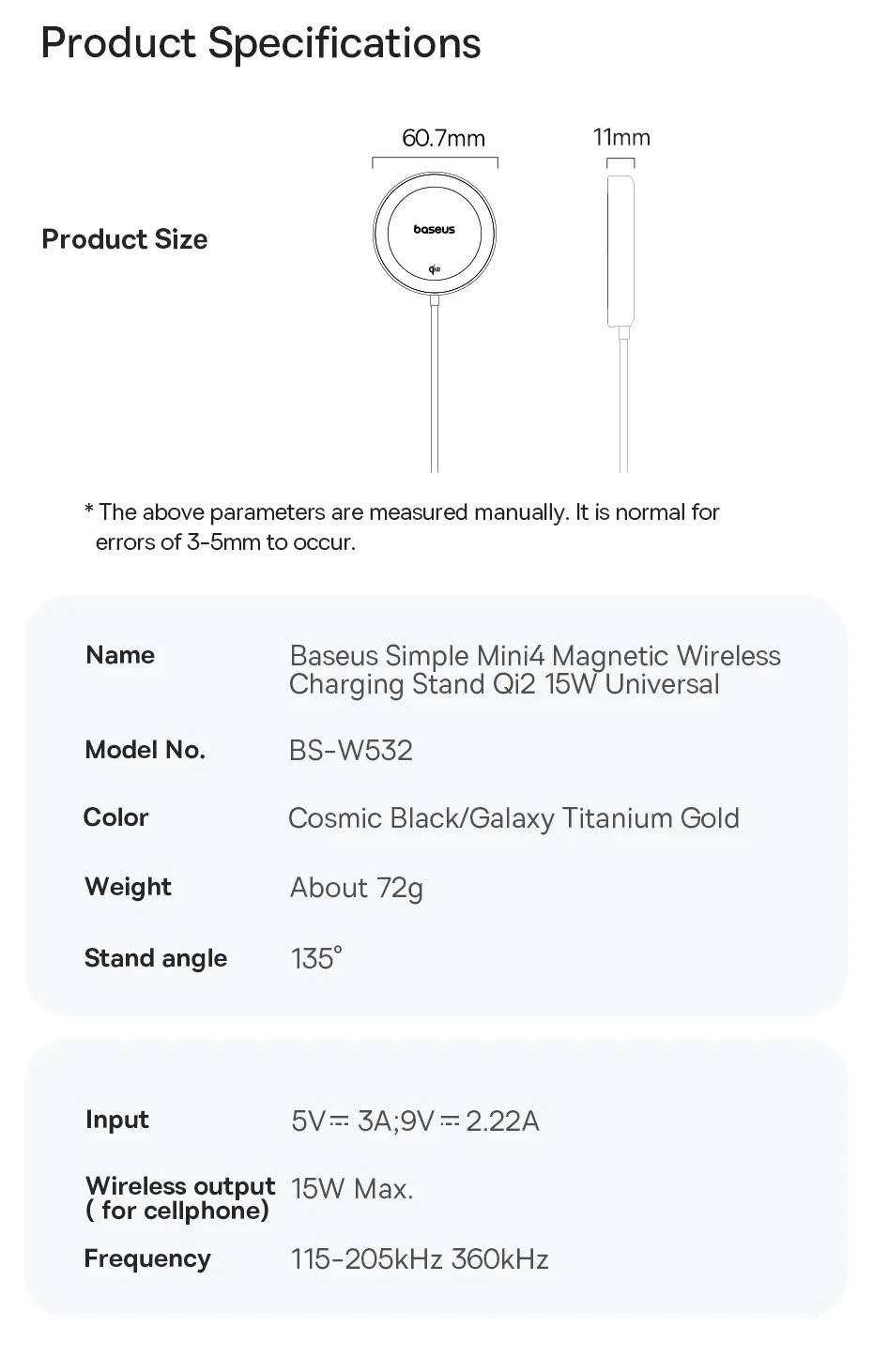 Trong thời đại công nghệ phát triển không ngừng, các thiết bị không dây ngày càng được ưa chuộng bởi tính tiện lợi và hiện đại. Baseus Simple Mini4 Magnetic Wireless Charger Qi2 Cosmic 15W là một trong những sản phẩm sạc không dây thế hệ mới, hỗ trợ sạc nhanh 15W với công nghệ từ tính hiện đại. Sản phẩm này tương thích hoàn hảo với các dòng iPhone 12, 13, 14, 15 Series, AirPods 3 và một số thiết bị Android hỗ trợ sạc không dây.