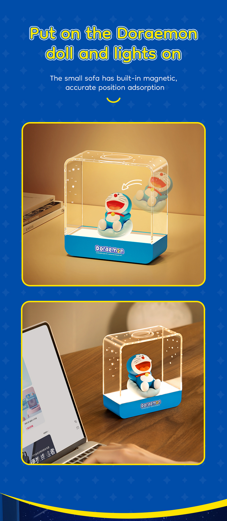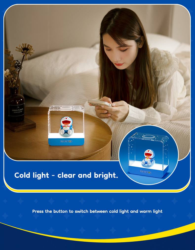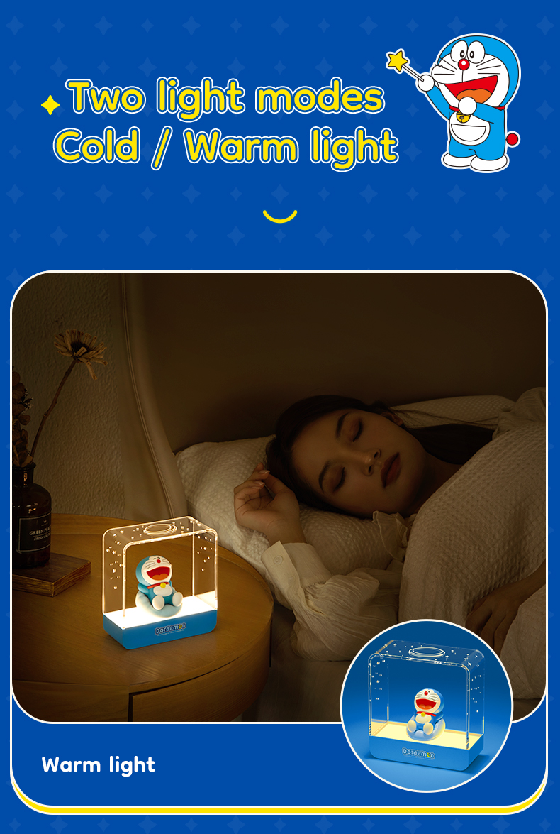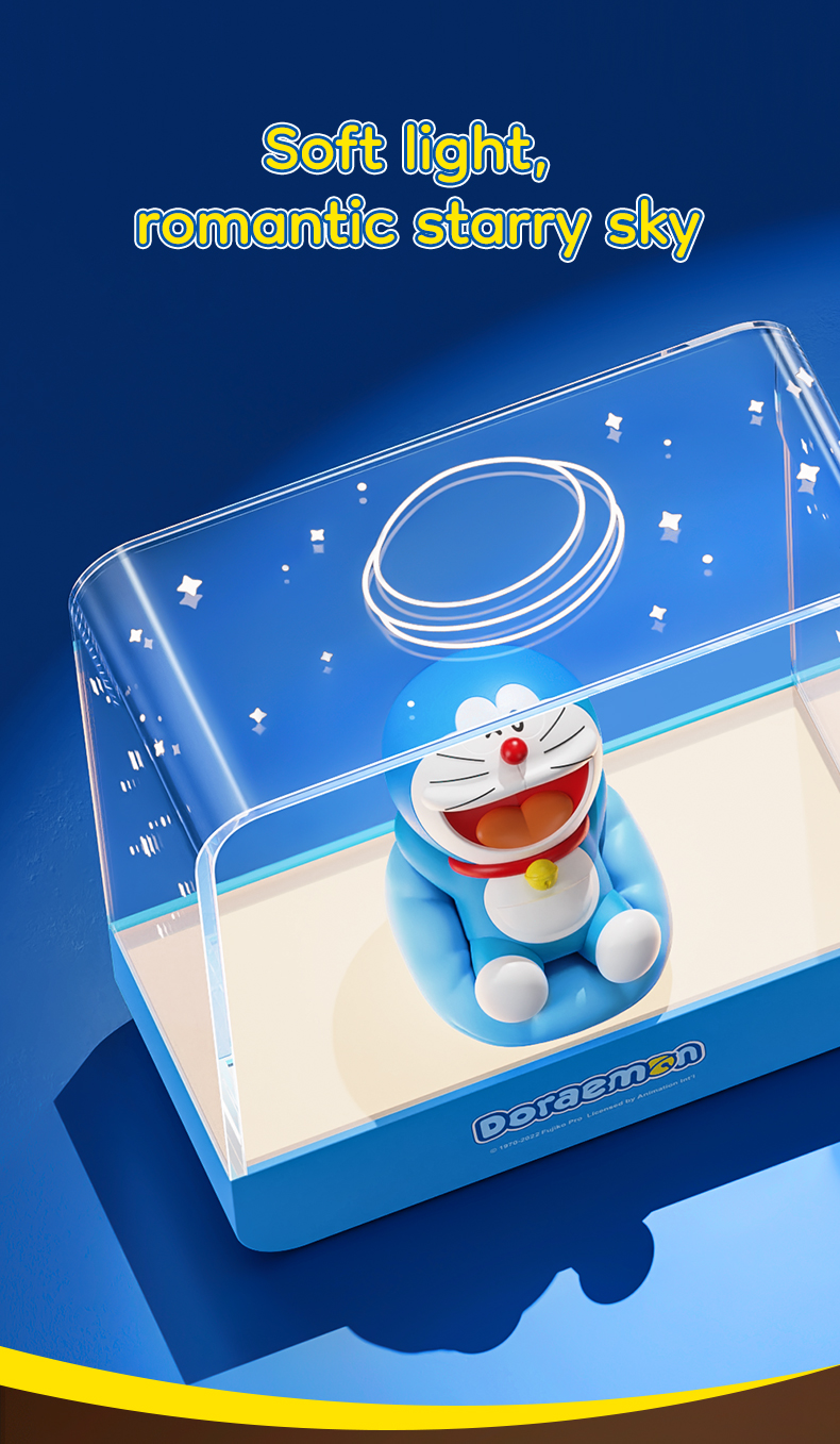 Đèn ngủ ROCK Doraemon Starry gây ấn tượng bởi thiết kế độc đáo lấy cảm hứng từ nhân vật Doraemon - chú mèo máy đáng yêu gắn liền với tuổi thơ của nhiều người. Tông màu xanh trắng đặc trưng và các chi tiết tinh tế làm nổi bật sự dễ thương, biến sản phẩm trở thành một món đồ trang trí nổi bật trong phòng ngủ, phòng khách hoặc không gian học tập.