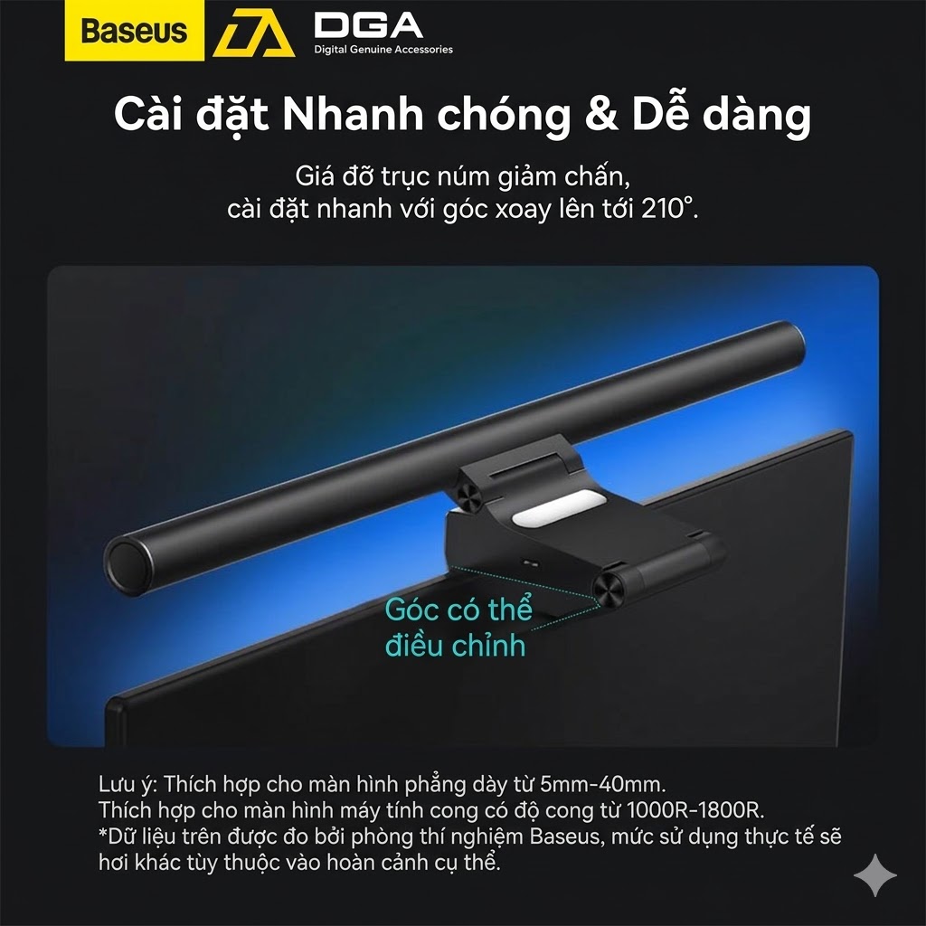 Thiết kế treo màn hình không chiếm diện tích bàn; công suất 5W tiết kiệm điện nhưng vẫn đủ sáng cho khu vực làm việc.baseus+1 -