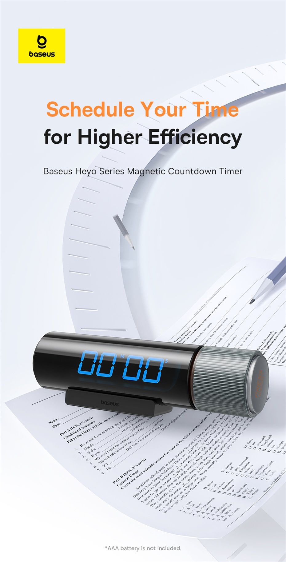 Giới thiệu Đồng Hồ Báo Thức Hẹn Giờ Đếm Ngược Màn Hình Kỹ Thuật Số Baseus Heyo Series Magnetic Countdown Timer