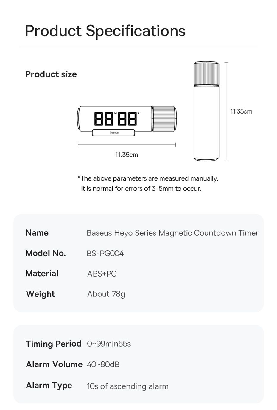 Tính năng Đồng Hồ Báo Thức Hẹn Giờ Đếm Ngược Màn Hình Kỹ Thuật Số Baseus Heyo Series Magnetic Countdown Timer