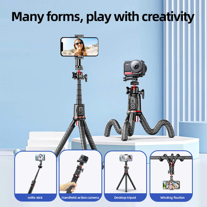 Tính năng Gậy chụp ảnh tích hợp Tripod cho Điện thoại/ Máy ảnh RTAKO C03 Octopus Extendable Tripod Selfie Stick (with Detachable Phone Holder)