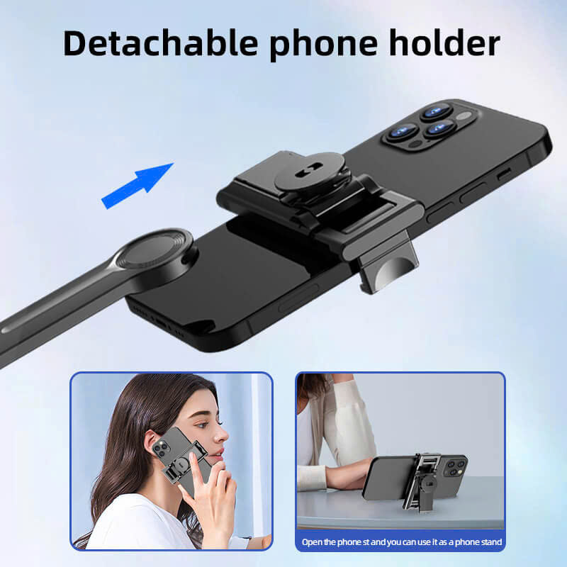 - Đầu kẹp điện thoại đa năng: Kẹp điện thoại chắc chắn, có thể điều chỉnh độ rộng, phù hợp với hầu hết các loại điện thoại.