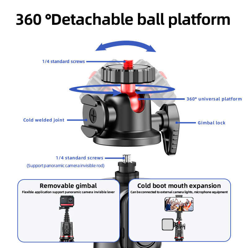 - Đa năng: Vừa là gậy selfie, vừa là tripod, vừa là chân đế mini.