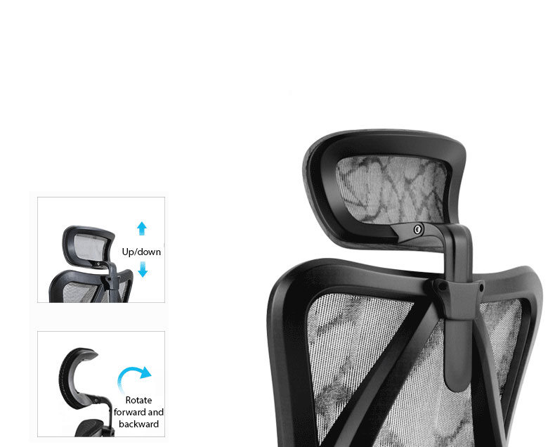 Tựa lưng thiết kế cong theo cột sống. Tựa lưng được thiết kế tập trung vào 3 vị trí trên cột sống một cách khoa học: cổ, ngực, thắt lưng. Thiết kế thắt lưng dạng lưới có thể điều chỉnh để hỗ trợ thắt lưng cột sống của bạn. Với khả năng thay đổi lực hỗ trợ cột sống ở tư thế này mang lại cảm giác thoải mái khi ngồi lâu. Tựa đầu có thể điều chỉnh độ cao thấp, tiến lùi giúp nâng đỡ sức nặng của đầu và chia sẻ áp lực lên đốt sống cổ.