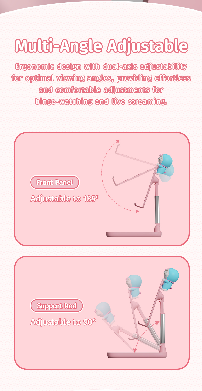 Điều chỉnh chiều cao và góc xoay, cố định máy bằng khe silicone chống trượt.