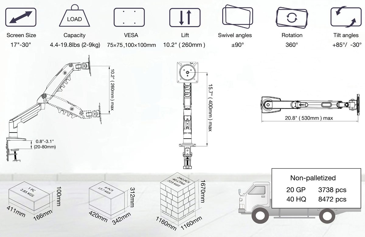 - Tương thích: Hỗ trợ hầu hết các loại màn hình từ 17 - 30 inch.
