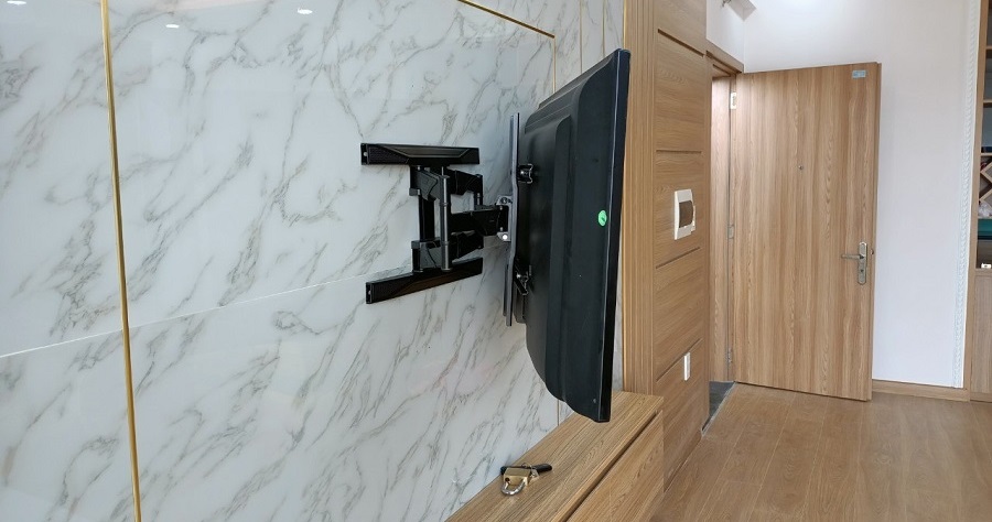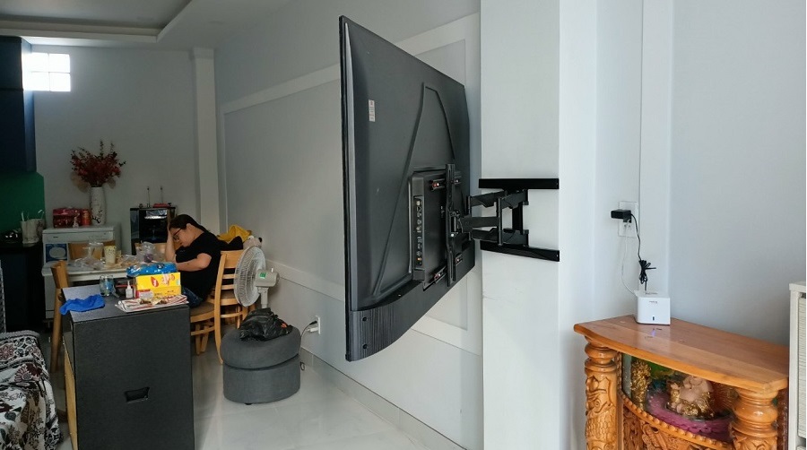 Tiết kiệm diện tích: khi gấp gọn, tivi chỉ cách tường vài cm, tạo sự gọn gàng, thẩm mỹ.