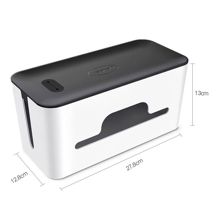 Hộp đựng cáp đa năng UGREEN LP110 Universal Cable Management Box phù hợp với hầu hết các kích thước của dây nguồn, cáp sạc, ổ cắm và cung cấp thêm không gian cho bộ chuyển đổi bộ sạc, dây, v.v. Dọn dẹp các loại cáp lộn xộn và dễ dàng giữ cho không gian của bạn gọn gàng hơn.