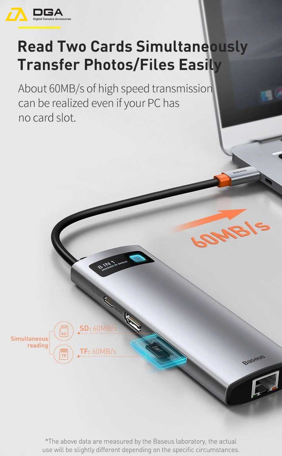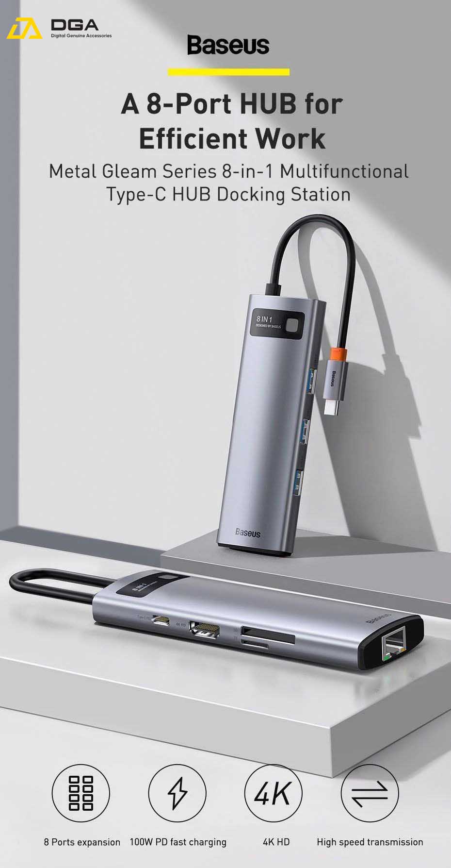 | LVM003-8P-RH | Baseus Metal Gleam Series 8-in-1 Multifunctional Type-C HUB Docking Station Gray (Type-C to HDMI*1+ USB3.0*3+ PD*1+ RJ45*1+ SD/TF*1) |