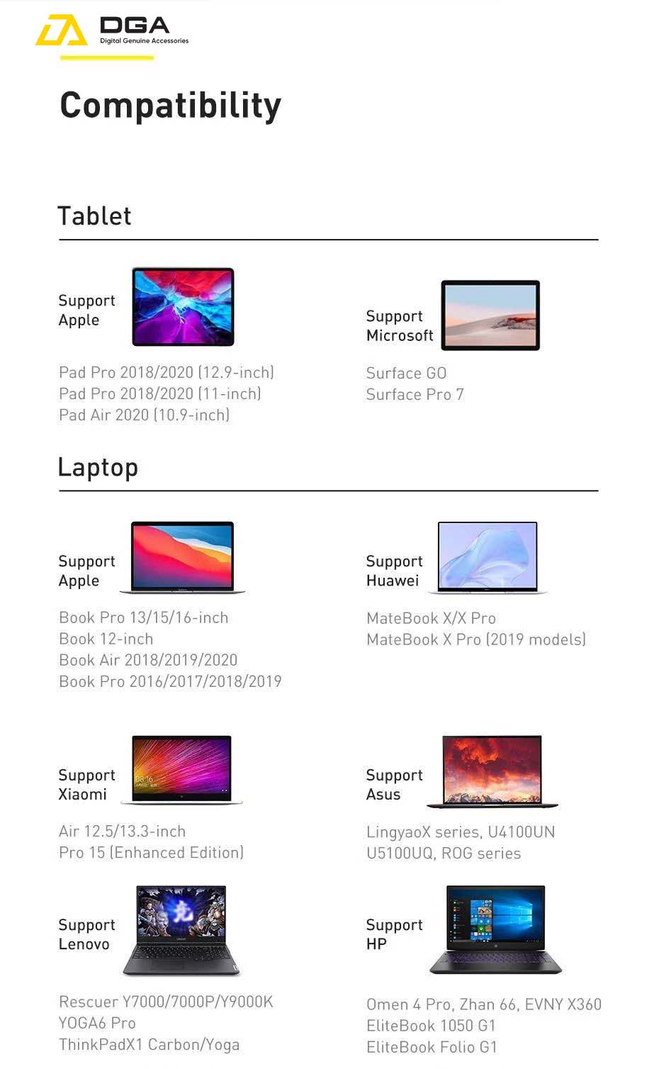 Name: Baseus Metal Gleam Series 12-in-1 Multifunctional Type-C HUB Docking Station Model No.: BS-OH037 HDMI: 8K@30Hz (Max.) Display Port: 8K@30Hz (Max.) USB 3.0*2: 5Gbps (Max.) USB 3.2*2: 10Gbps (Max.) Type-C 3.2: 10Gbps (Max.) Type-C PD: 100W (Max.) RJ45: 10Mbps/100Mbps/1000Mbps SD/TF: 104MB/s (Max.), Do not support data reading at the same time. 3.5mm Audio: Support headphones, audio output. Input: 5V/3A, 9V/3A, 15V/3A, 20V/5A Output: 5V/0.9A Operating systems: Windows, Apple OS, Linux, Vista etc. Applicable devices: Mainstream Type-C Notebooks, mobile phones such as Apple Book Pro 2016/2017/2018/2019/2020/2021, Apple Book Air 2018/2019/2020/2021 etc. Size: 168×51×17mm Weight: About 135g |