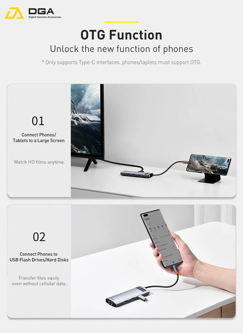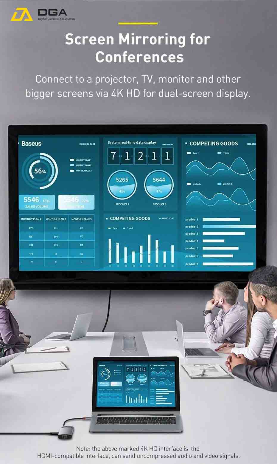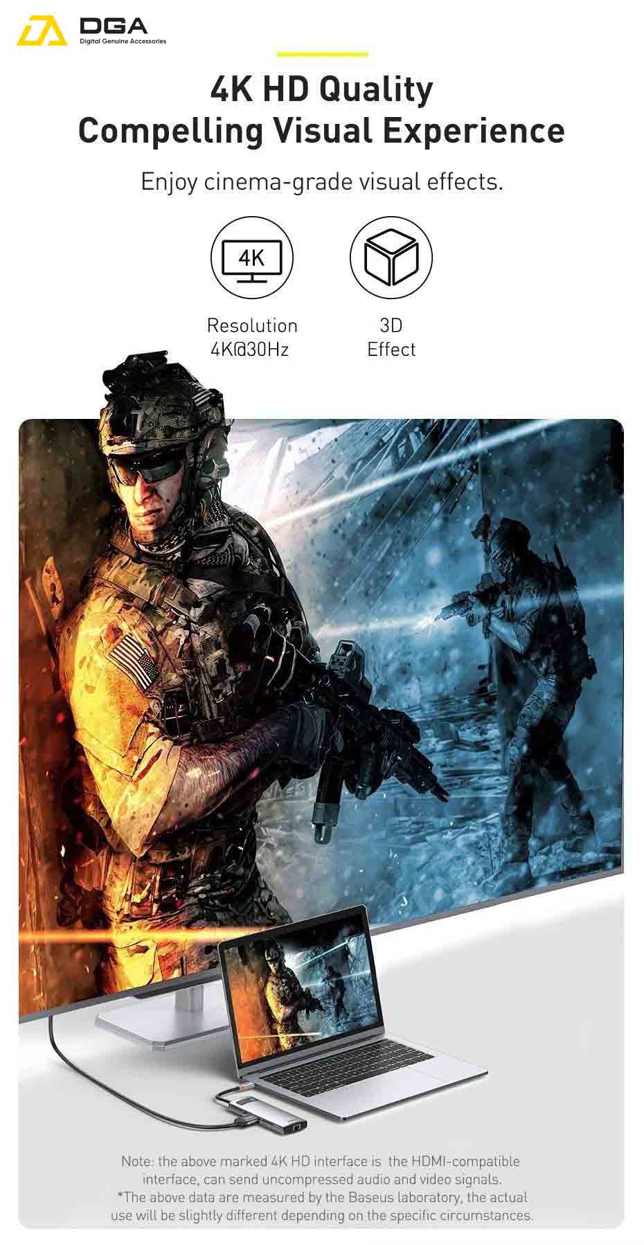 - Hub Chuyển đổi Baseus và mở rộng cổng USB Type C trên Smartphone/ Tablet/ Laptop/ Macbook Pro thành các cổng giao tiếp và xuất video cơ bản hiện nay bao gồm HDMI(4K), VGA, Display Port USB3.0, RJ-45, SD, TF, Audio Aux 3.5mm, Type C (Data / PD100W)...(tùy phiên bản) . Hub Chuyển đổi Baseus giúp nâng cấp đáng kể khả năng kết nối, giao tiếp xuất hình ảnh/ Video cho thiết bị của bạn.