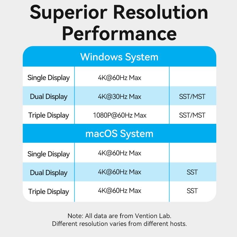 Windows: chế độ MST (Extend) và SST, xuất tối đa 3 màn hình cùng lúc (DP + 2 HDMI).
