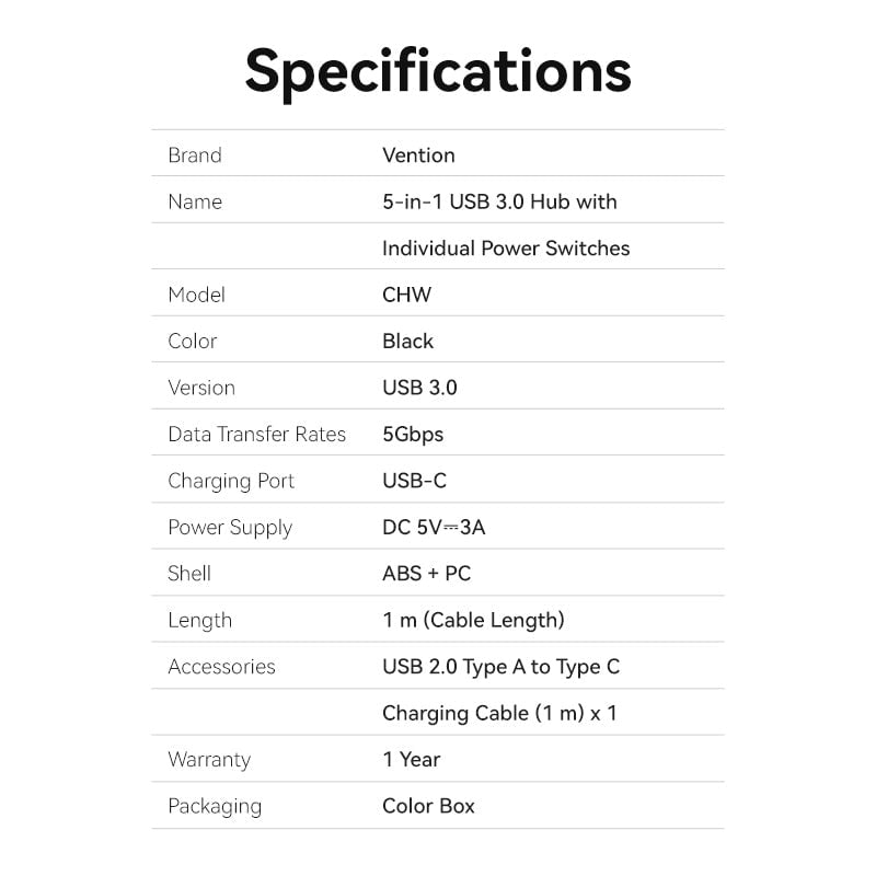 Giới thiệu HUB Mở Rộng Đa Năng USB3.0 to 4*USB3.0 + Type C Power Switches VENTION CHW (5Gbps)