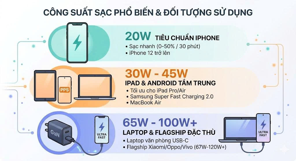 Công suất 65W - 100W+: Sức mạnh cho Laptop và Flagship đặc thù