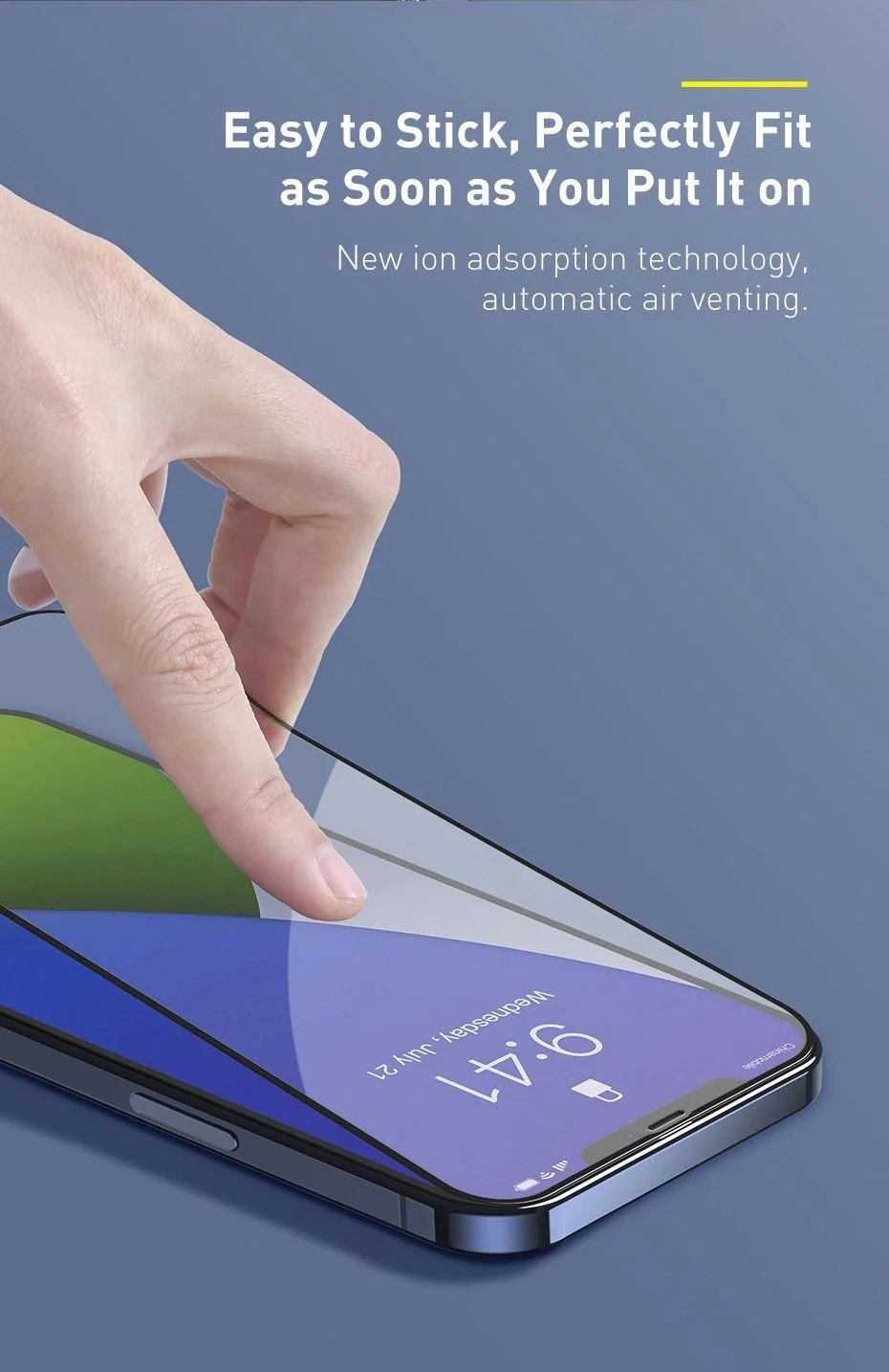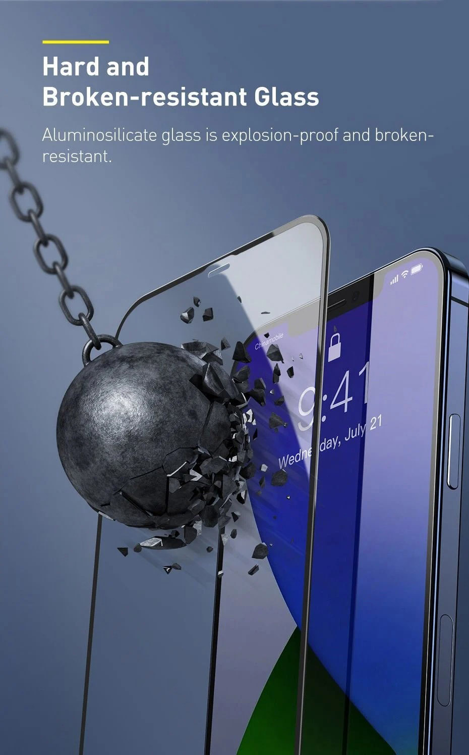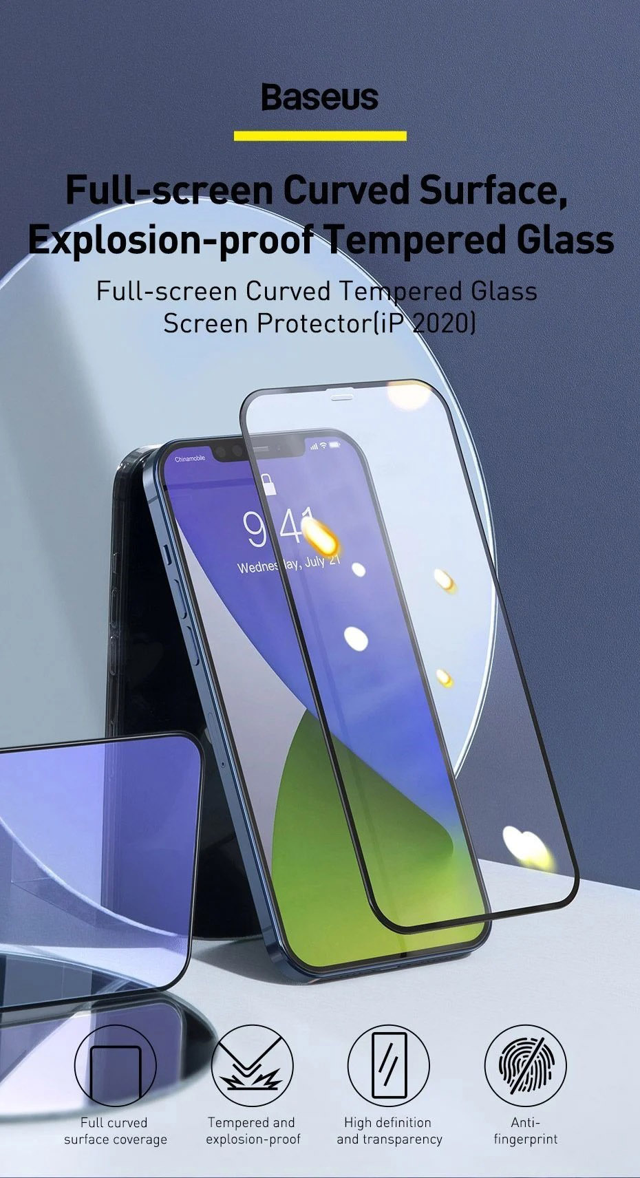 - Kính cường lực Baseus Full -Glass có độ dày 0,3mm chuyên dụng cho các dòng iPhone 12 như iPhone 12 Mini / iP 12/ iP 12 Pro/ iPhone 12 Promax.
