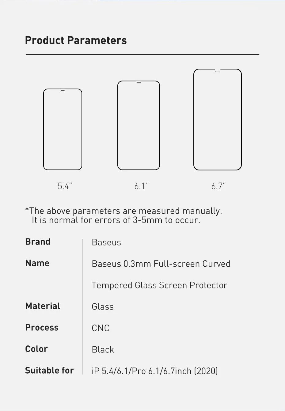 Thông số kỹ thuật Kính cường lực 3D tràn viền dùng cho iPhone 12 Series Baseus full-Screen Curved Tempered Glass