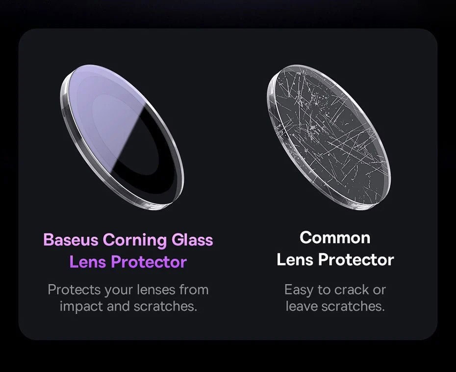 Baseus Glare Repelling Corning Được làm từ chất liệu trong suốt nên không ảnh hưởng đến việc sử dụng camera, chất lượng hình ảnh vẫn sắc nét và tự nhiên.