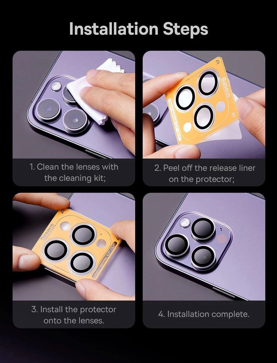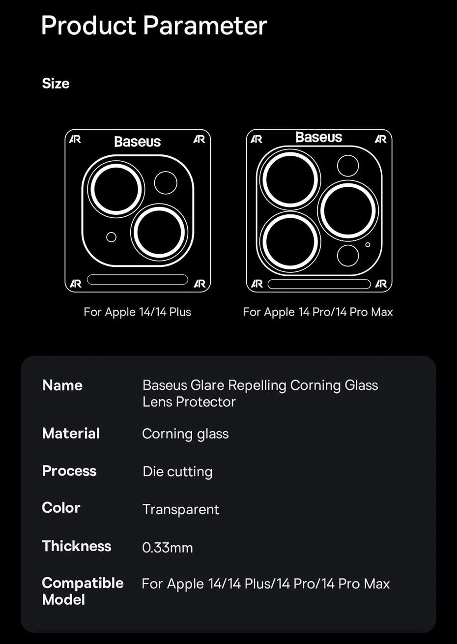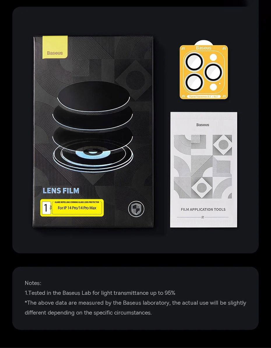iPhone 14 là chiếc điện thoại được sở hữu cụm bộ ba camera vì thế việc bảo vệ camera sẽ gây rất nhiều khó khăn cho người dùng. Nắm bắt được thị hiếu người dùng Baseus đã cho ra mắt dán cường lực camera Glare Repelling Corning cho iPhone 14 viền đen để bảo vệ tốt camera hơn.