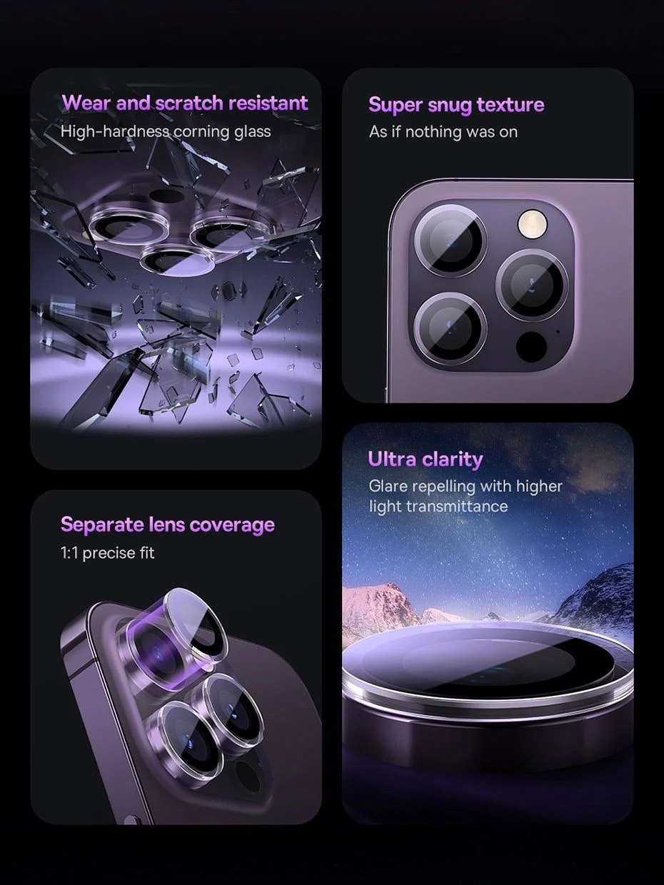 Tính Năng Kính Cường Lực Chống Trầy Cho Camera Baseus Glare Repelling Corning Glass Lens Protector Cho iPhone 14 Series
