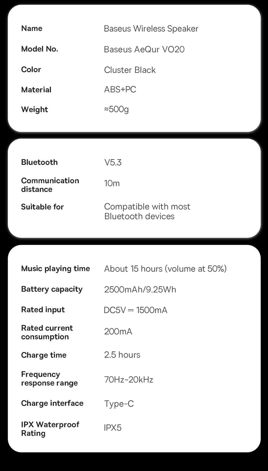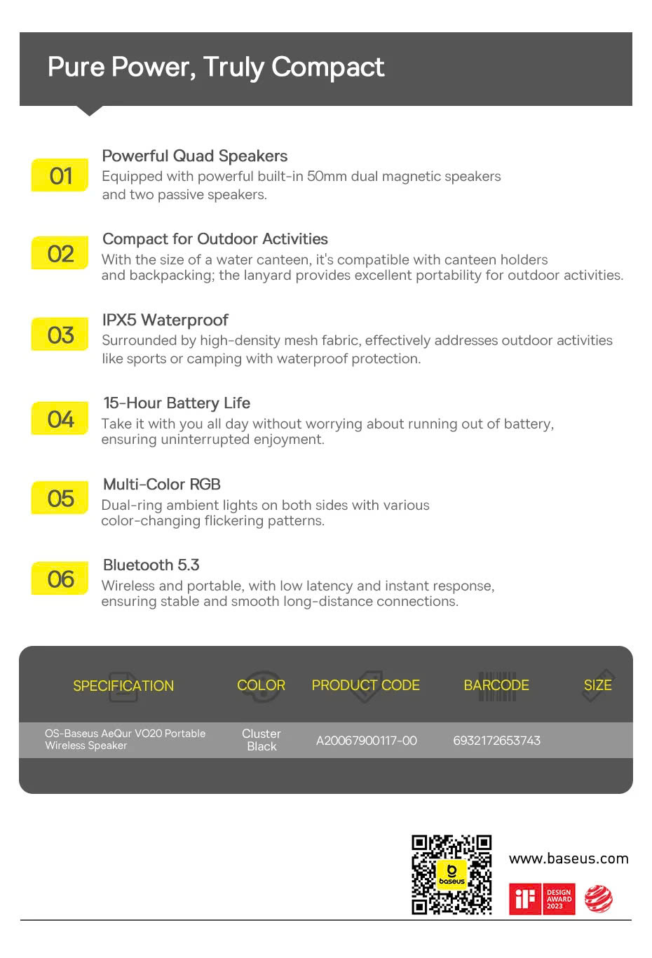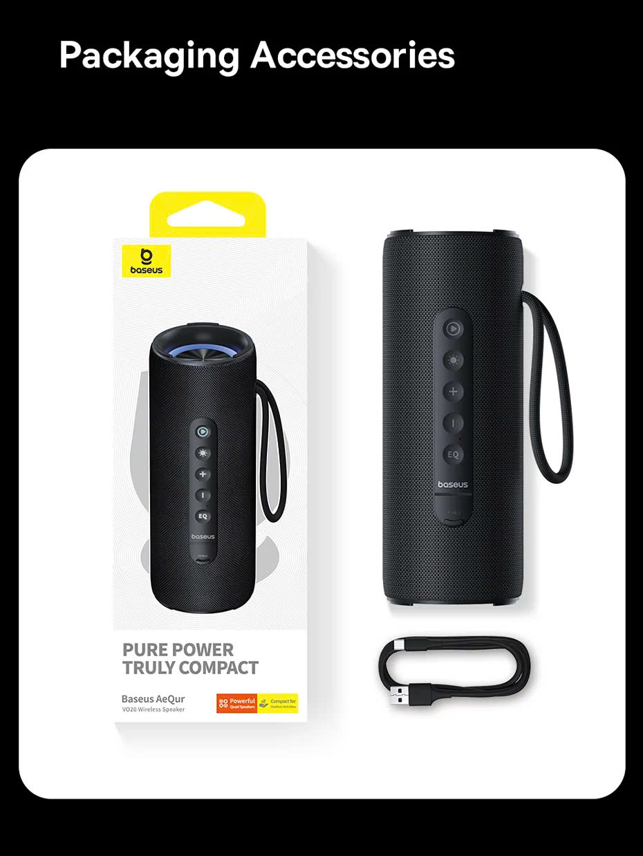 Giới thiệu Loa Bluetooth Baseus AeQur VO20 Portable Wireless Speaker (Bluetooth 5.3, IPX5 Waterproof, Bass Subwoofer Sound box for Outdoor Camping Speakers)