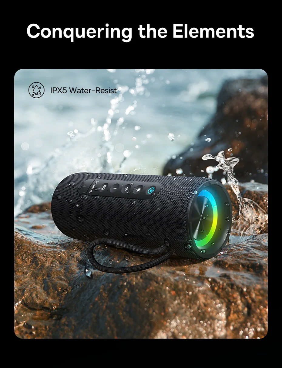 Với chuẩn chống nước IPX5, loa Baseus AeQur VO20 có thể chống chịu được tia nước bắn từ mọi phía. Bạn có thể thoải mái sử dụng loa ở bãi biển, hồ bơi, hoặc trong những buổi dã ngoại ngoài trời mà không cần lo lắng về việc loa bị hư hỏng do nước. Tính năng này đặc biệt hữu ích cho những người yêu thích các hoạt động ngoài trời.
