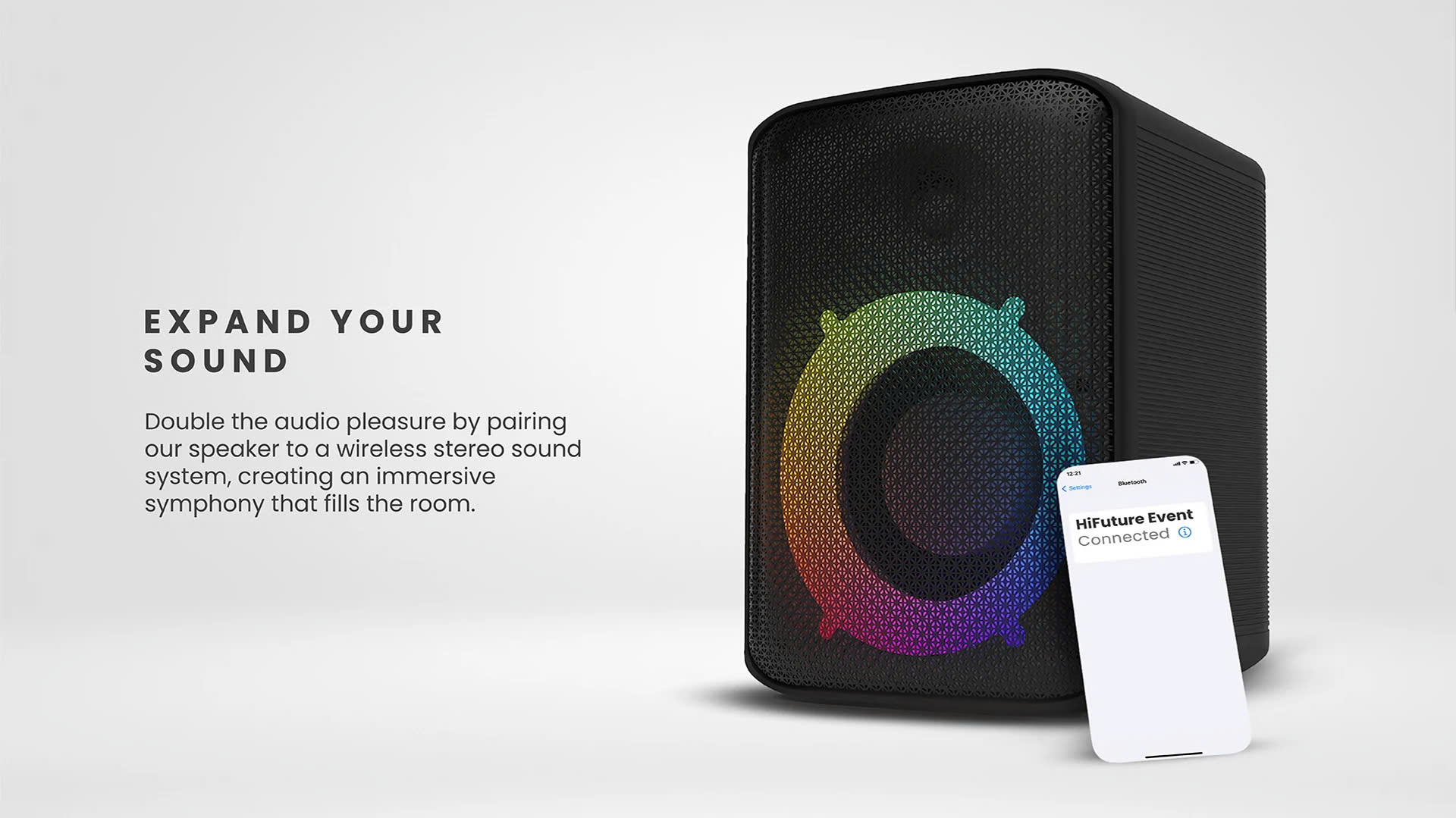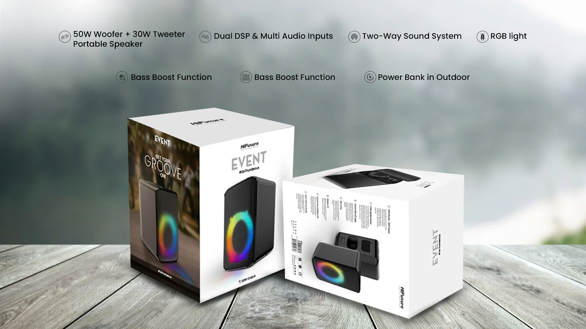 HiFuture EVENT 80W trang bị hệ thống loa mạnh mẽ với bass sâu, treble sáng và mid rõ ràng, giúp âm thanh phát ra to, rõ, không bị méo tiếng. Công suất 80W giúp âm thanh lan tỏa tốt, phù hợp cho không gian vừa và lớn.