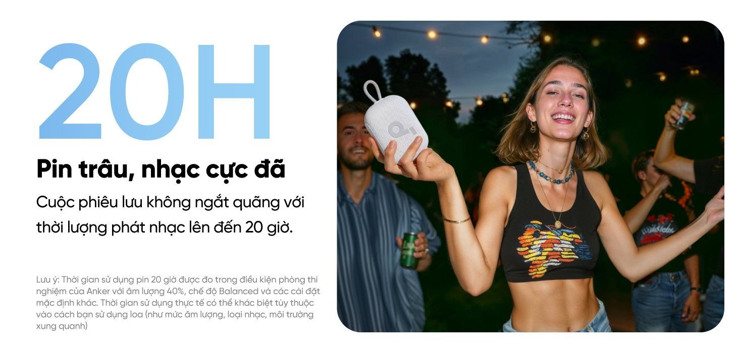 Loa Anker Soundcore Select 4 Go - A31X1 có thời lượng pin lên đến 20 giờ, cho bạn thoải mái tận hưởng âm nhạc cả ngày dài.