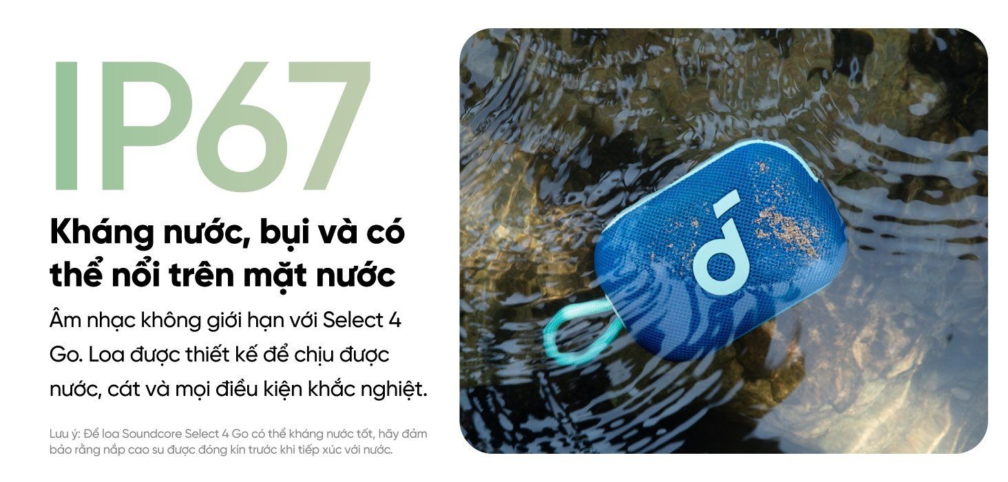 Loa Anker Soundcore Select 4 Go - A31X1 có khả năng chống nước IP67, giúp bạn yên tâm sử dụng trong mọi điều kiện thời tiết hoặc môi trường.