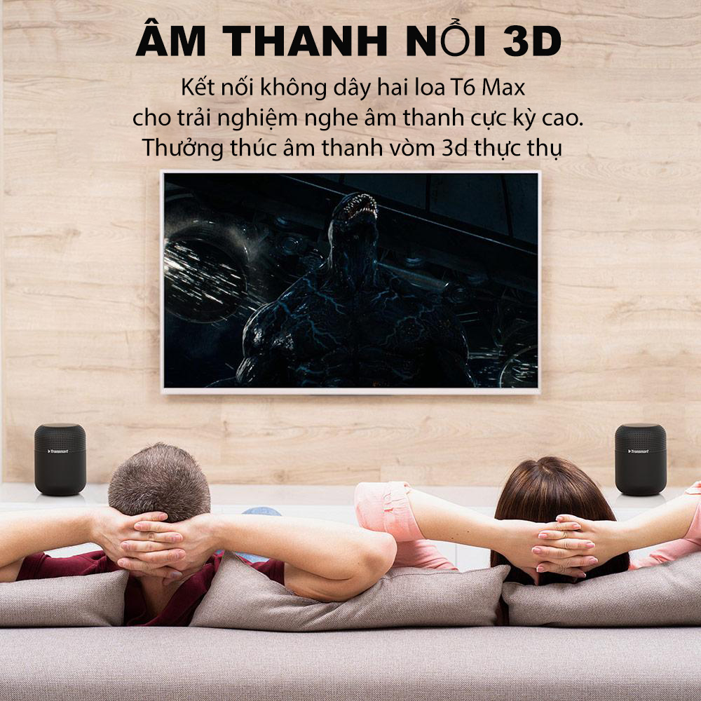 Loa Tronsmart T6 Max công suất 60W hỗ trợ TWS ghép đôi 2 loa âm thanh vòm 360 độ bass sâu và trầm với 3 chế độ EQ ,có mic đàm thoại, điều khiển cảm ứng tiện lợi.