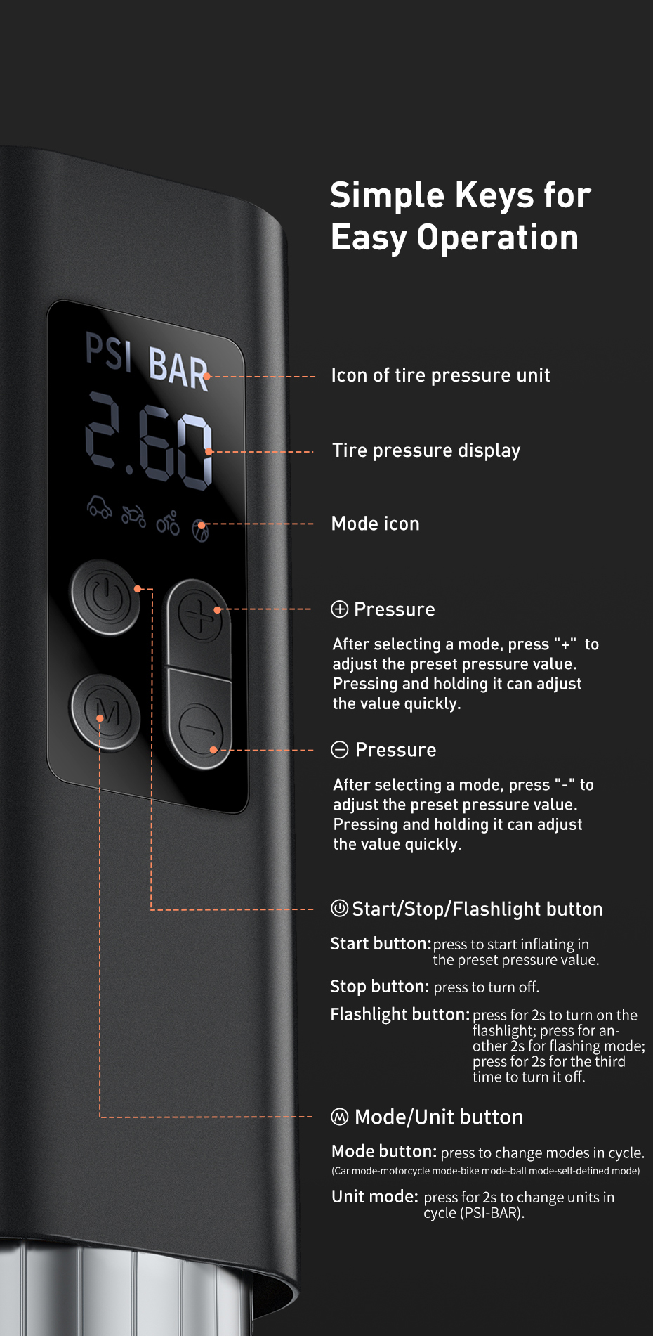 - Màn hình hiển thị thông minh: Hiển thị rõ ràng áp suất lốp, giúp bạn dễ dàng kiểm soát quá trình bơm.