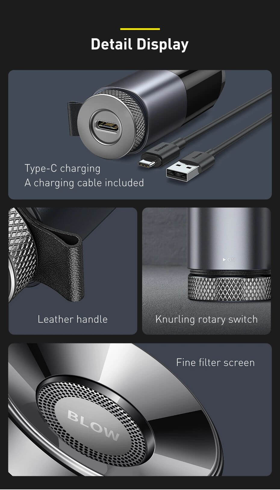 Máy đo nồng độ cồn Baseus Digital Alcohol Tester sử dụng pin sạc USB-C, cho thời gian sử dụng liên tục và tiện lợi.