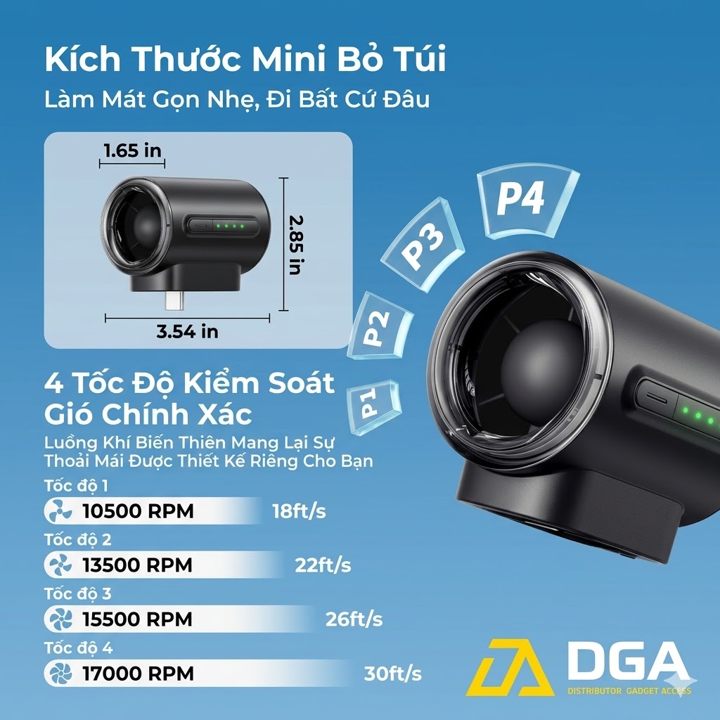 Sức mạnh vượt trội: Tốc độ 17000RPM thổi bay cái nóng tức thì, mạnh hơn gấp nhiều lần các loại quạt mini thông thường.
