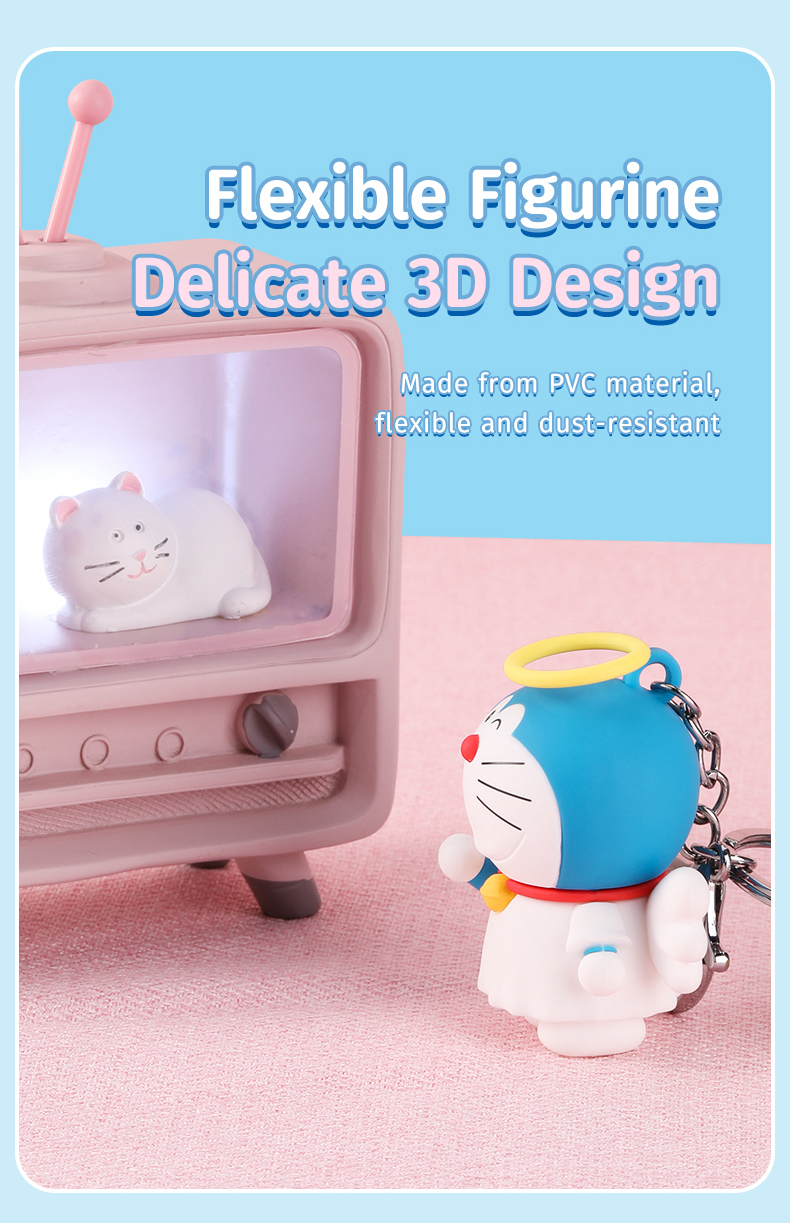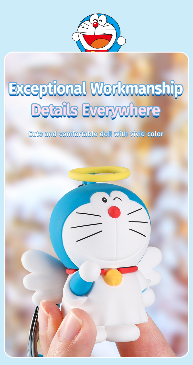 Sản phẩm có kích thước nhỏ gọn, phù hợp để gắn vào chìa khoá, túi xách, hoặc ba lô mà không gây cồng kềnh. Lấy cảm hứng từ nhân vật hoạt hình Doraemon, thiết kế của móc chìa khoá này mang màu sắc tươi sáng, dễ thương và cuốn hút, phù hợp với mọi lứa tuổi, đặc biệt là những ai yêu thích phong cách trẻ trung, năng động.