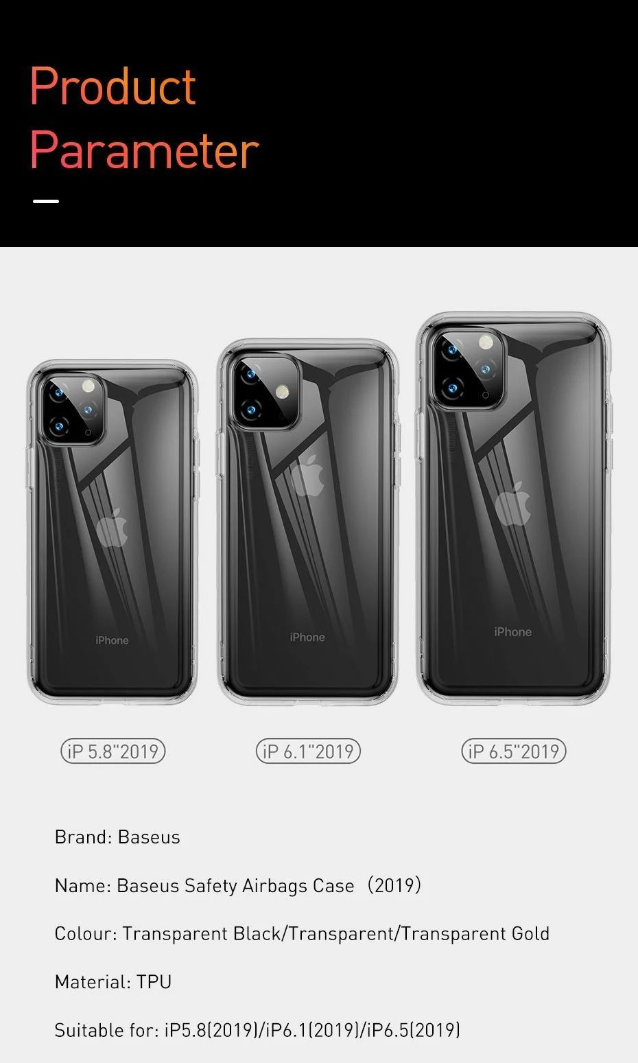 Tính năng cơ bản Ốp lưng chống sốc trong suốt Baseus Safety Airbags Case cho iPhone 11 Pro Series 2019 ( TPU Soft Silicone, Military Level Anti Knock Case)