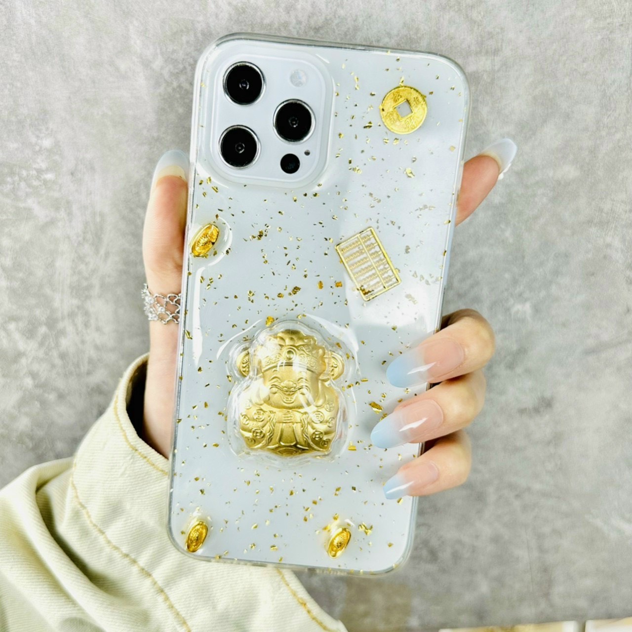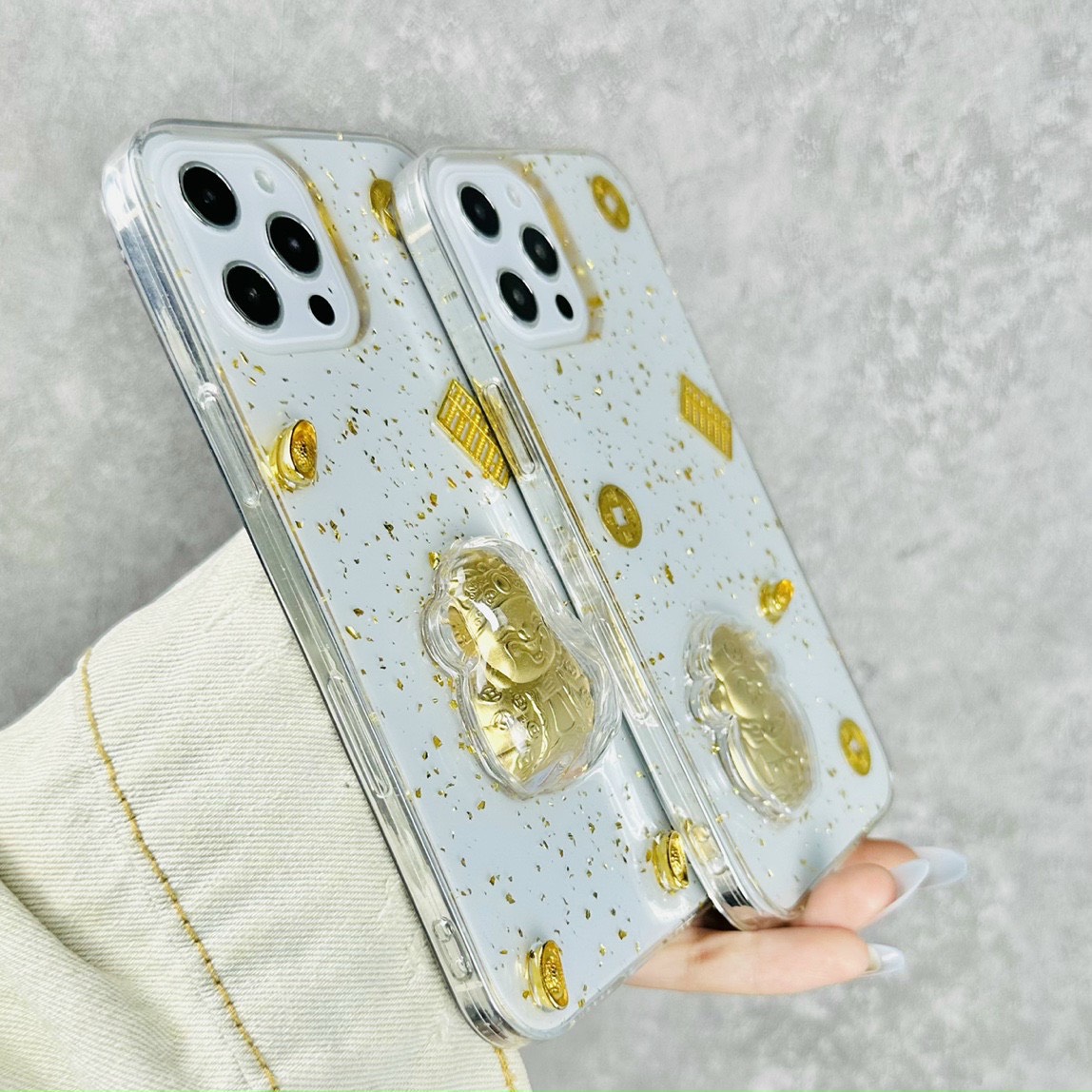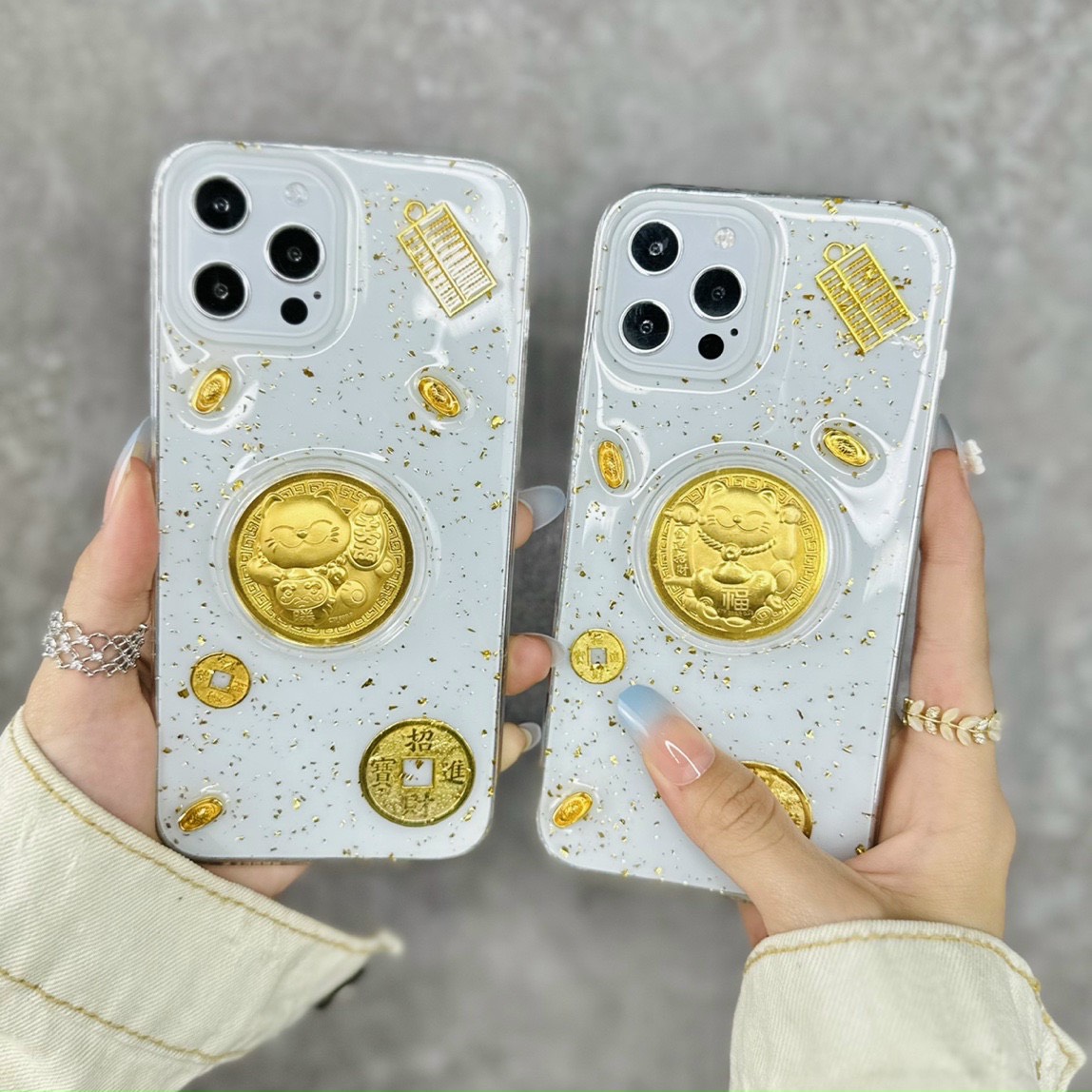 Ốp lưng iPhone dẻo thần tài, mèo chiêu tài chống ố vàng có ngăn cài thẻ chất liệu TPU dày 0.9 mm, mềm dẻo, trong suốt, có độ đàn hồi cao, có thể bóp lại, cuộn lại mà không biến dạng. Ốp lưng được thiết kế với 4 góc dày dặn hơn (hầu hết khi rơi máy các góc sẽ va chạm đầu tiến), kết hợp với phần khung viền từ nhựa dẻo TPU cao cấp khá dầy dặn (~1mm), phần tiếp xúc với cạnh máy có làm thêm các đường gân không những giúp cho ốp cầm chắc tay hơn mà còn tăng khả năng đàn hồi, bảo vệ toàn bộ máy luôn an toàn trước mọi va chạm, mặt lưng còn 4 chấu nhỏ nhô cao để nâng phần lưng của máy lên khi để lên bàn hạn chế xước Camera sau của máy. Mọi chi tiết hoàn thiện của ốp lưng đều làm rất đẹp, các vết cắt mịn, đều. Các phím bấm được làm nổi giúp thao tác dễ dàng.