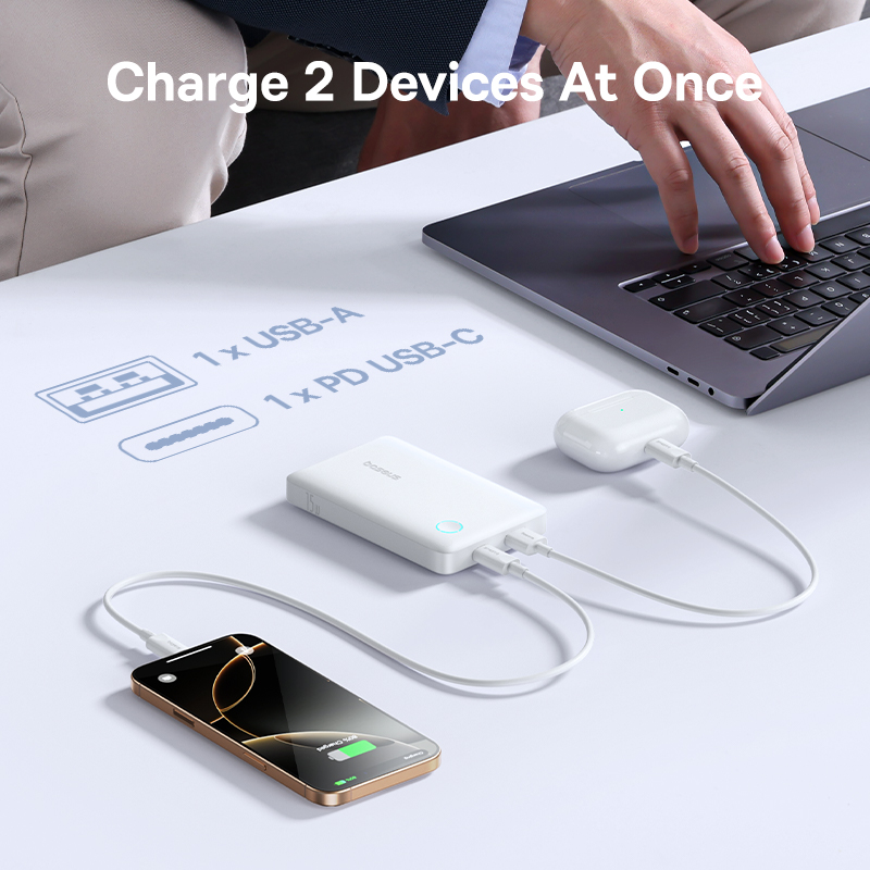 - Sạc cùng lúc 2 thiết bị: Bạn có thể sạc đồng thời điện thoại và tai nghe, hoặc chia sẻ năng lượng với bạn bè một cách tiện lợi.