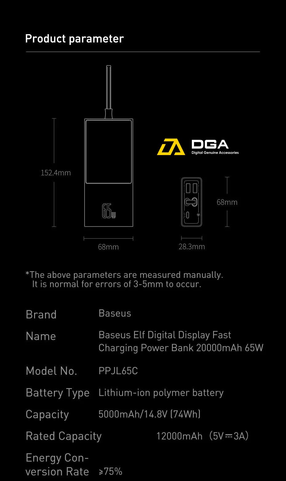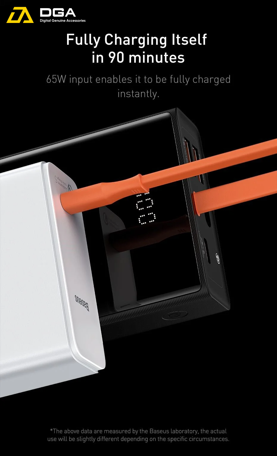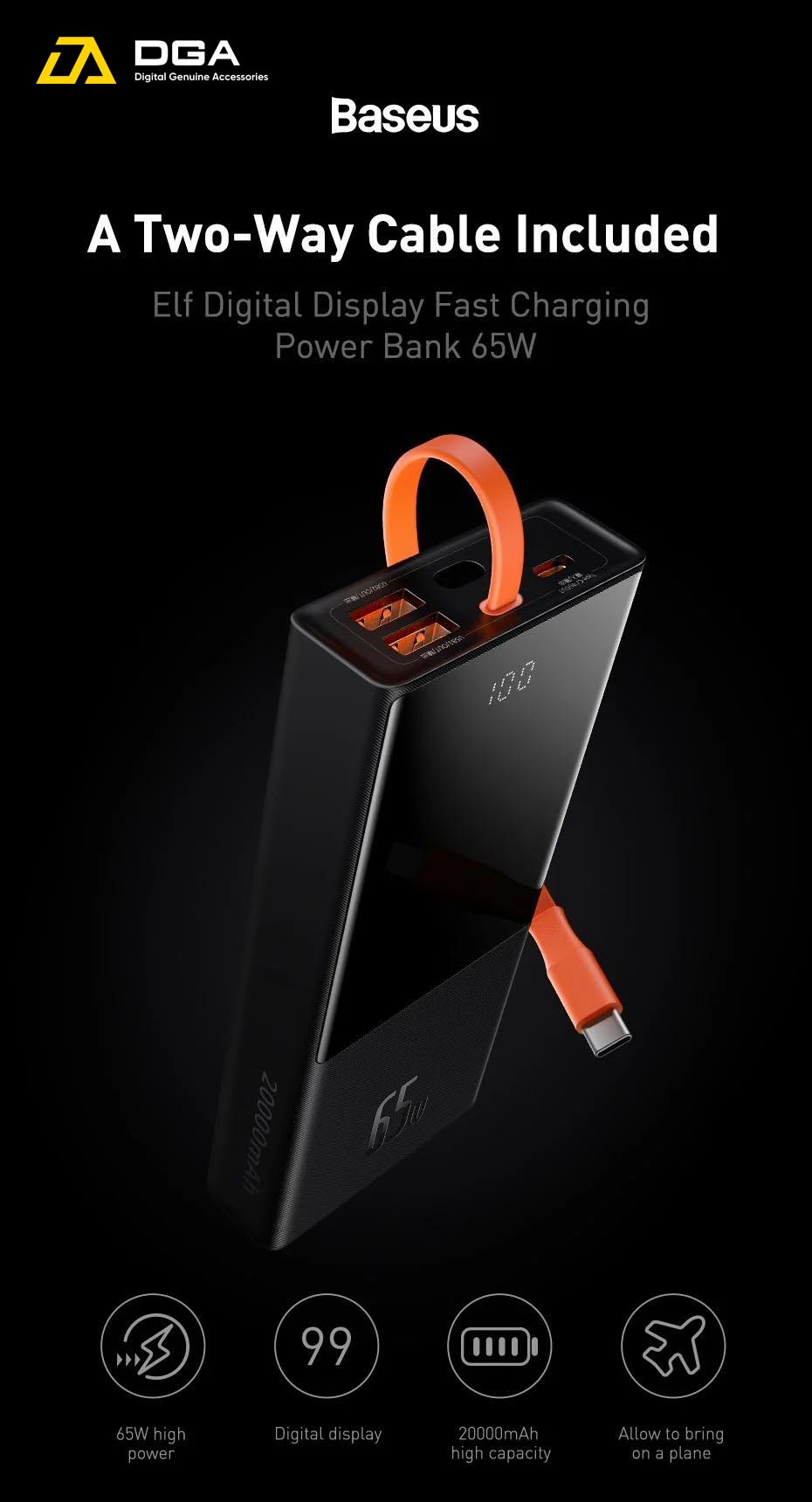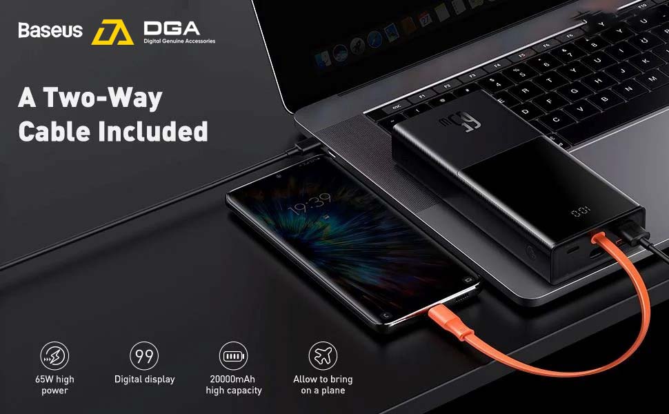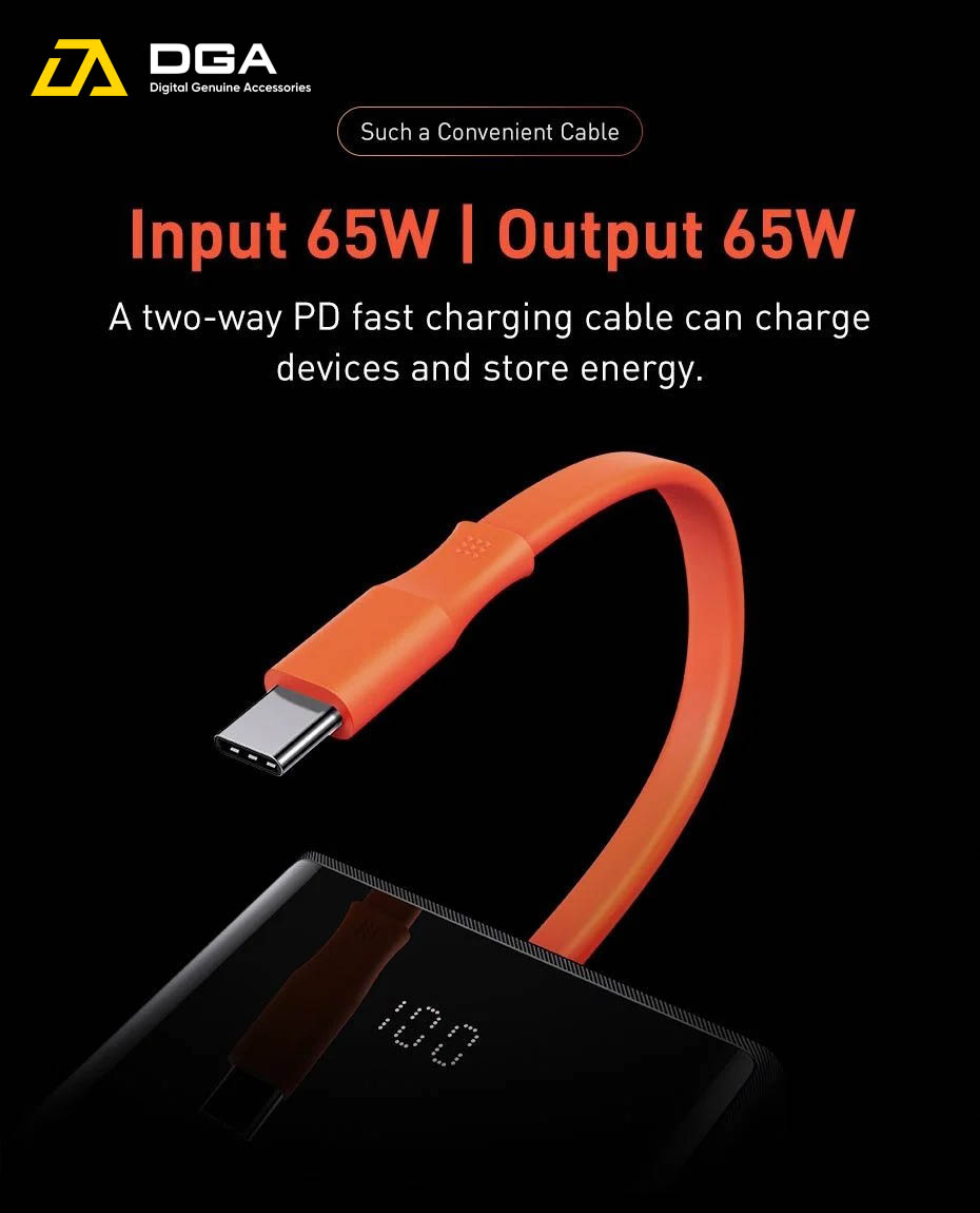 Bao gồm cáp sạc nhanh PD hai chiều (đầu vào 65W - đầu ra 65W), có thể sạc thiết bị và lưu trữ năng lượng
