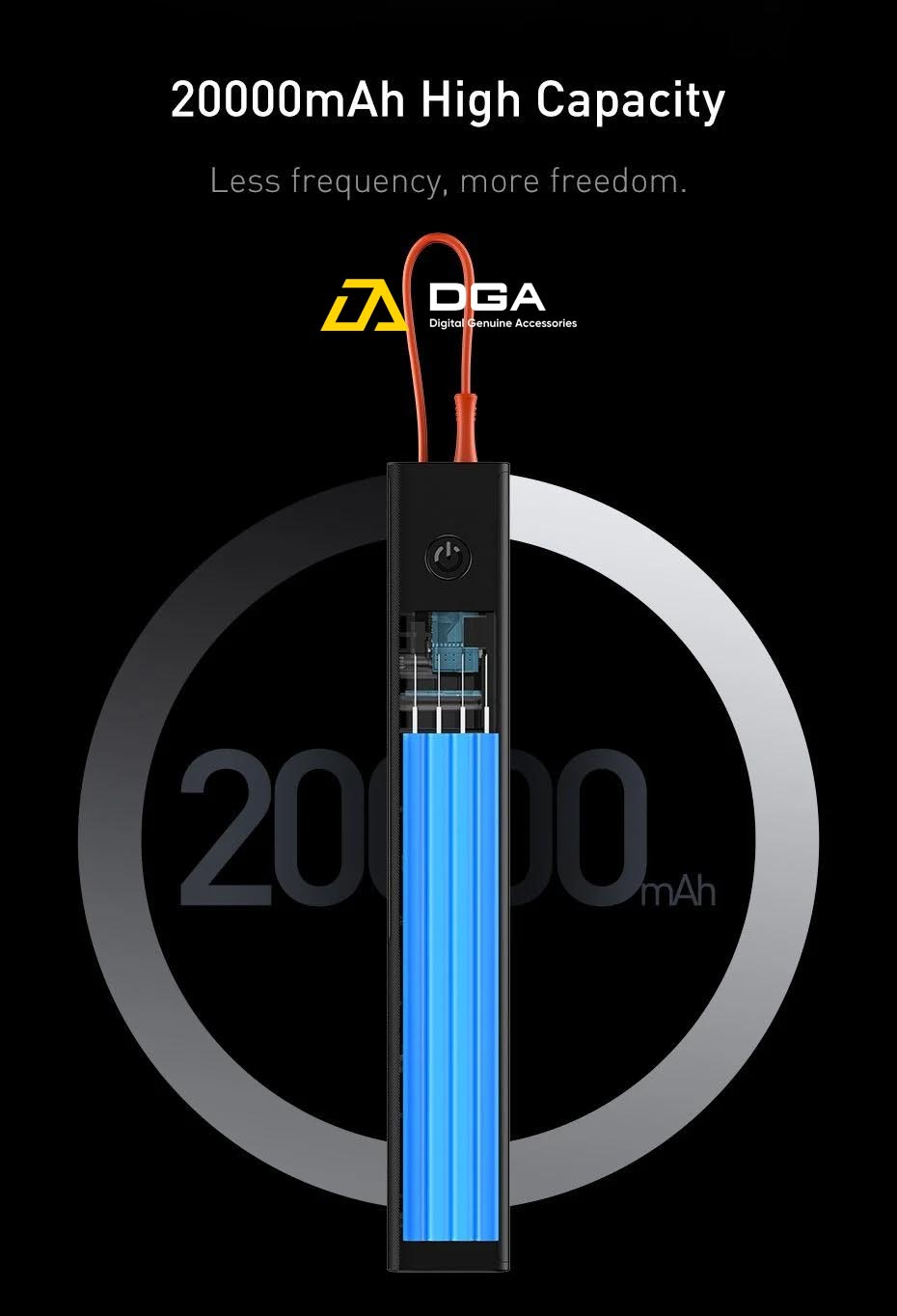 Dung lượng cao 20000mAh, có thể sạc thiết bị của bạn nhiều lần