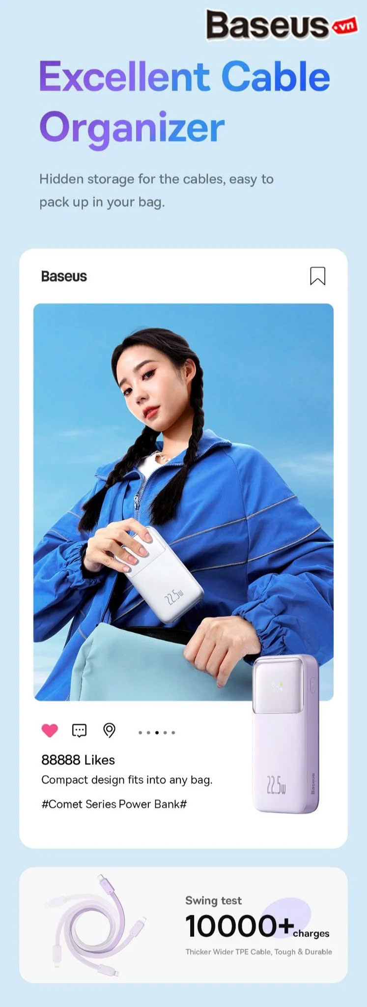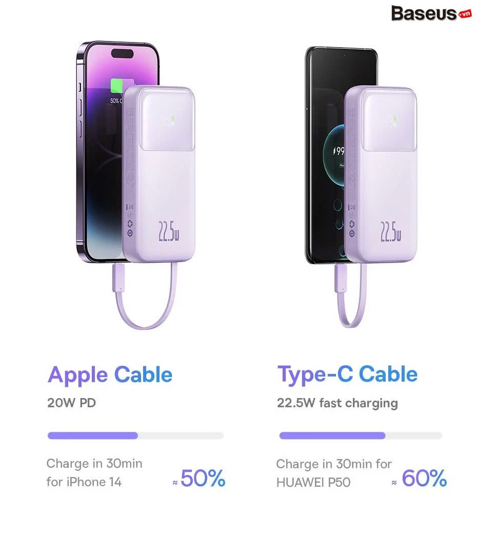 Giới thiệu Pin Sạc Dự Phòng Baseus Comet Series Dual Cable Digital Display Cho iPhone, Type-C (10000mAh/20000mAh, 22.5W, Built-in Dual-Cable Fast Charge Power Bank)