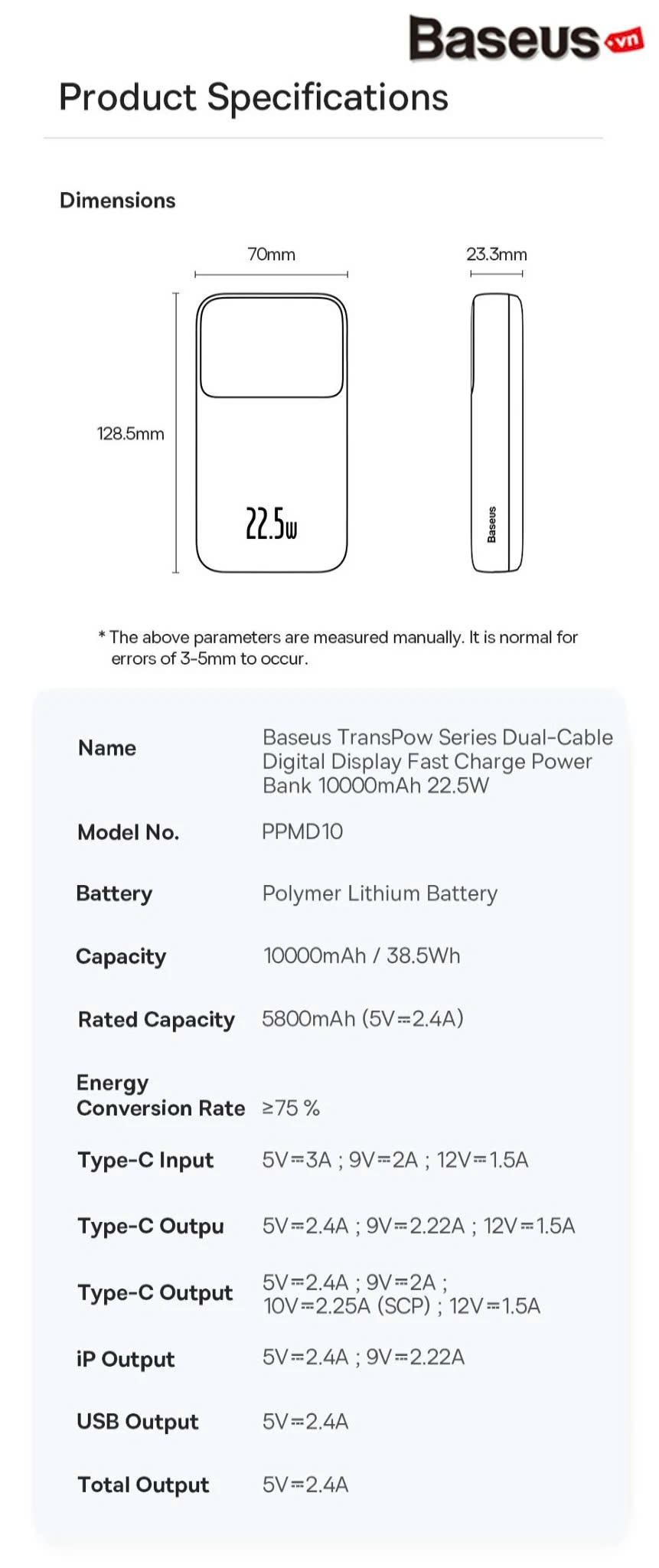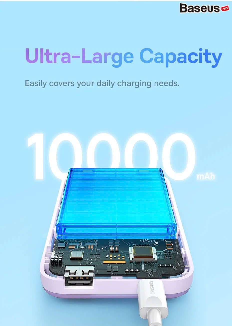 10.000mAh: Phù hợp cho người dùng phổ thông, dễ dàng mang theo hàng ngày.