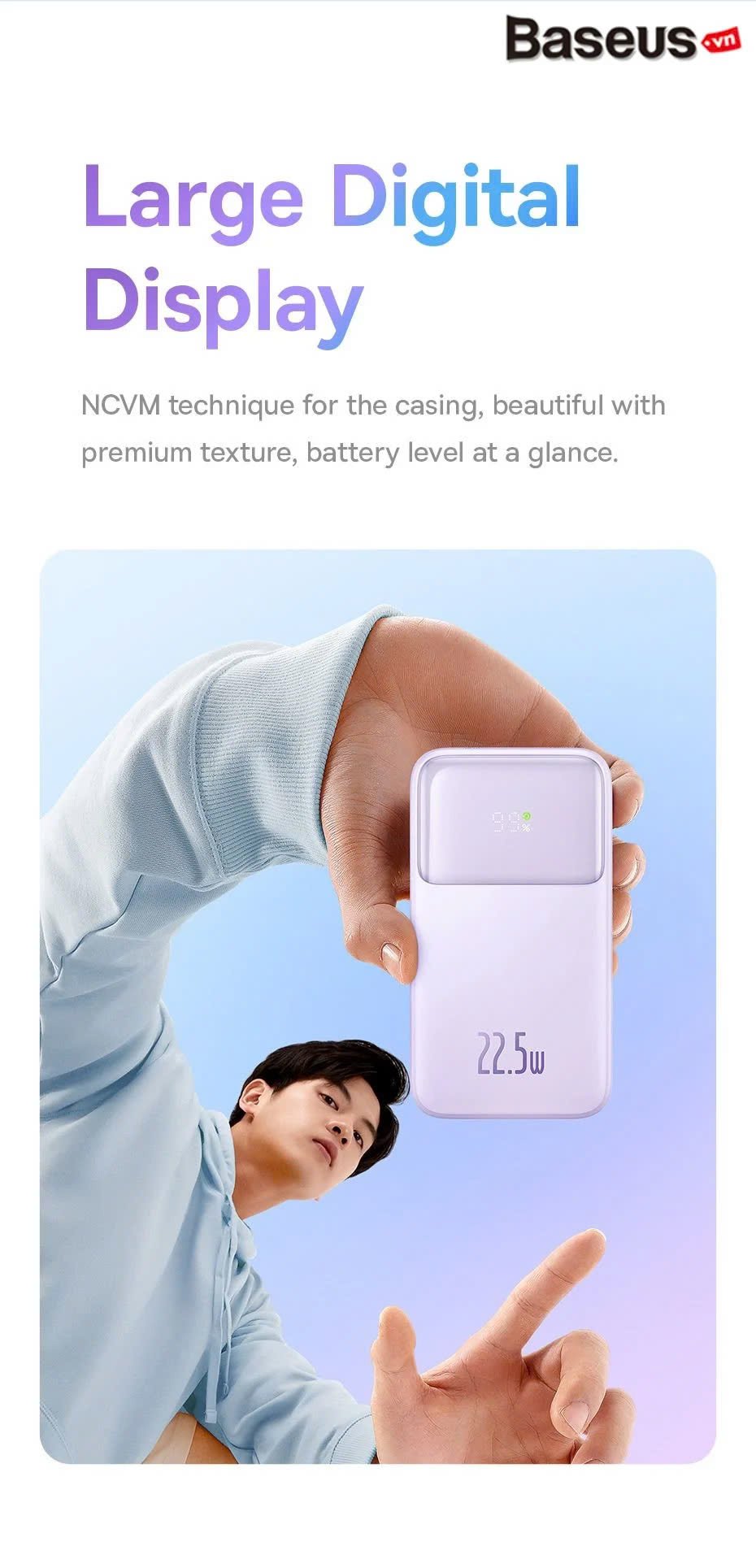 Công suất 22.5W giúp sạc nhanh hơn các pin sạc thông thường.