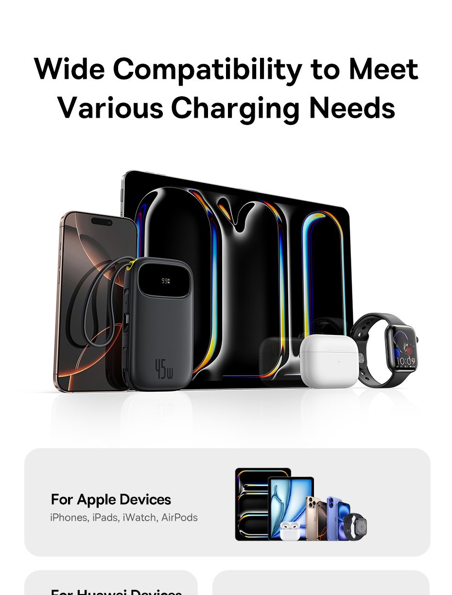 Sạc nhanh MacBook Air, iPad, laptop mini, iPhone, Samsung Galaxy, Xiaomi, và nhiều thiết bị cổng USB-C.