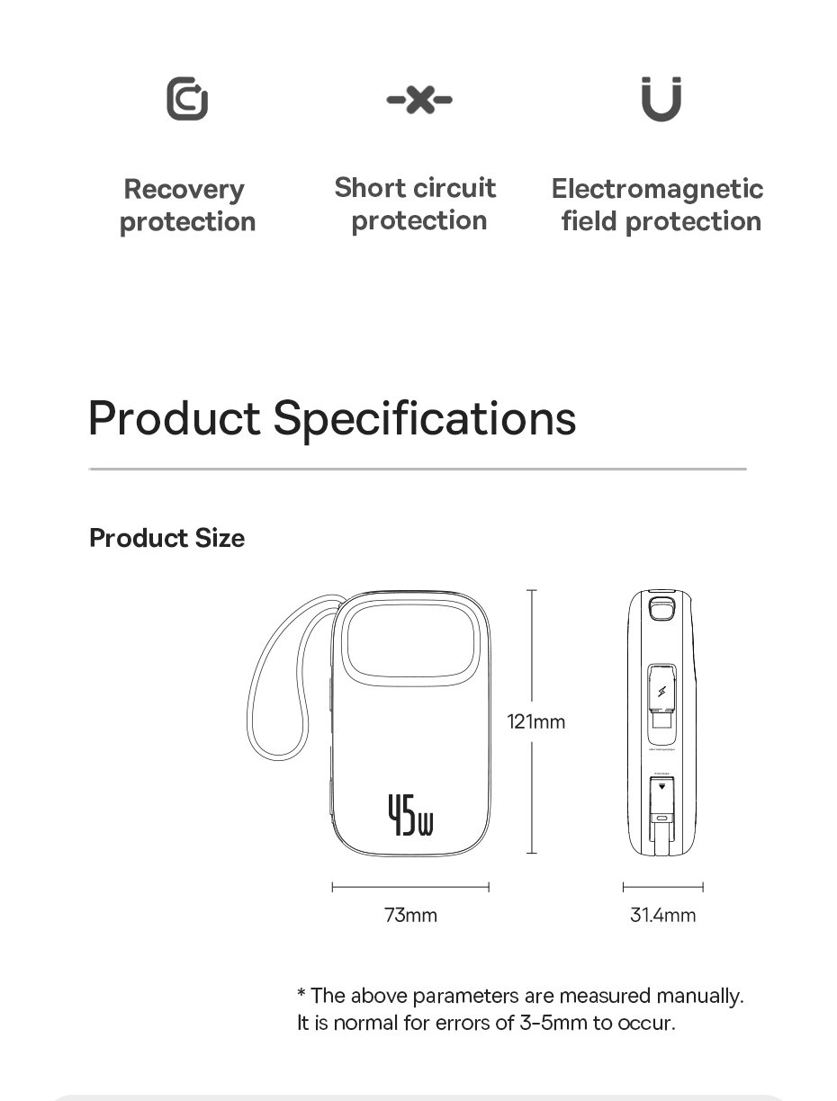 Baseus luôn nổi tiếng với các sản phẩm đạt chuẩn an toàn cao. EnerFill FC31 QPow 3 không ngoại lệ, được trang bị: