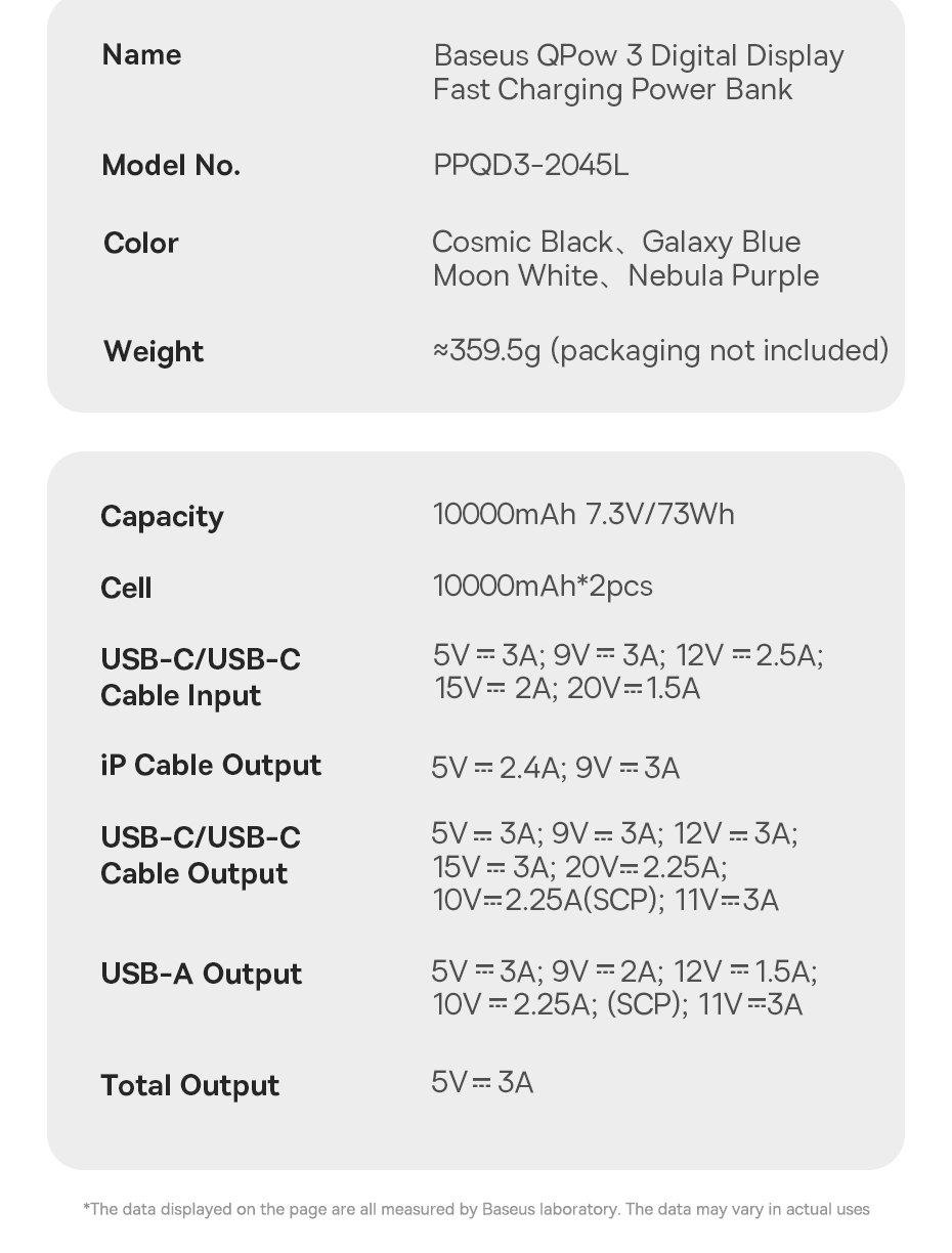 | Model | Baseus FC31 QPow 3 | Baseus FC31 QPow 3 |