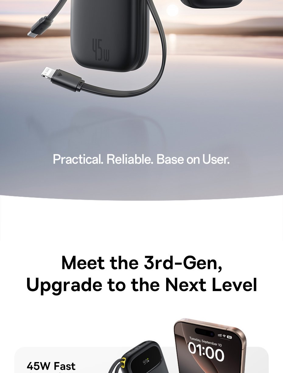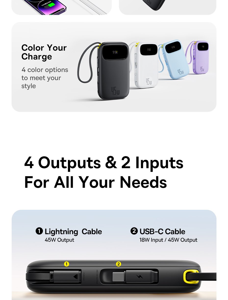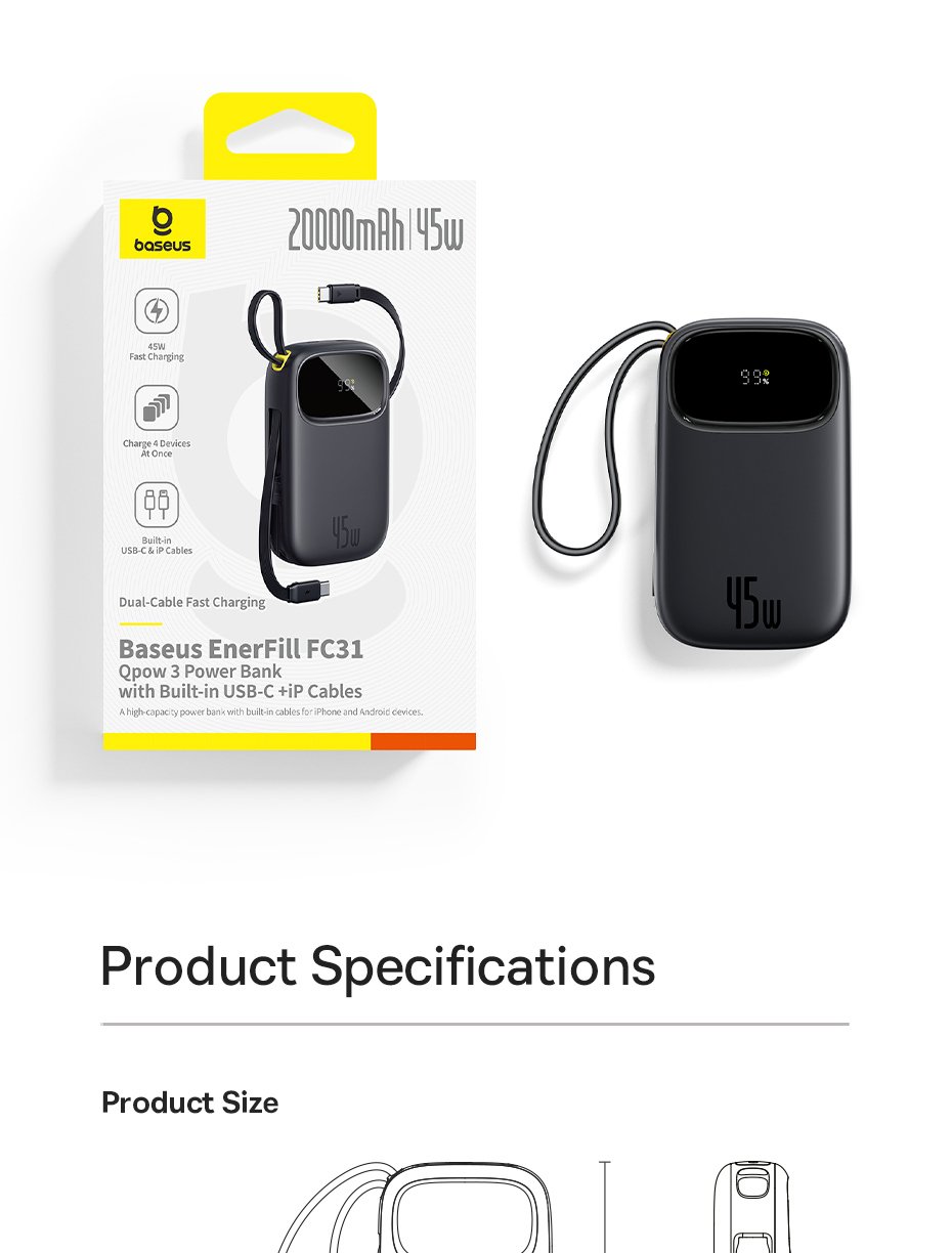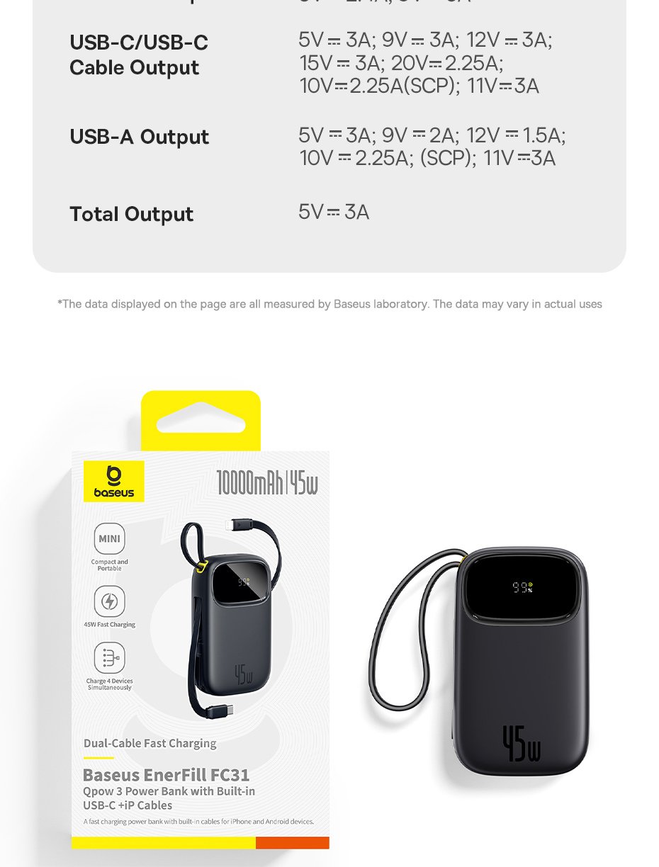 Pin Dự Phòng Baseus EnerFill FC31 QPow 3 – Sạc Nhanh 45W, Hai Phiên Bản Dung Lượng, Cáp Tích Hợp Tiện Lợi