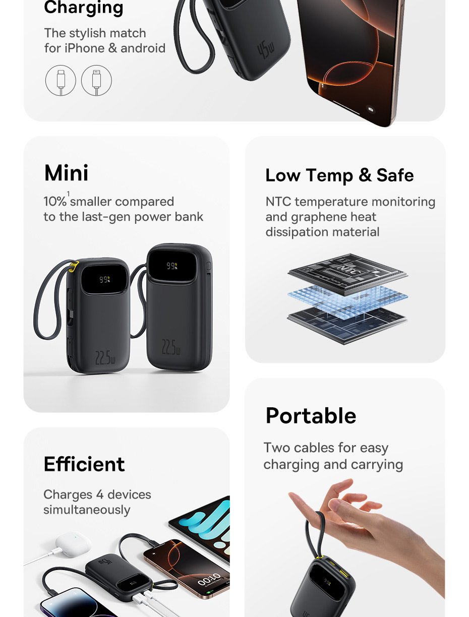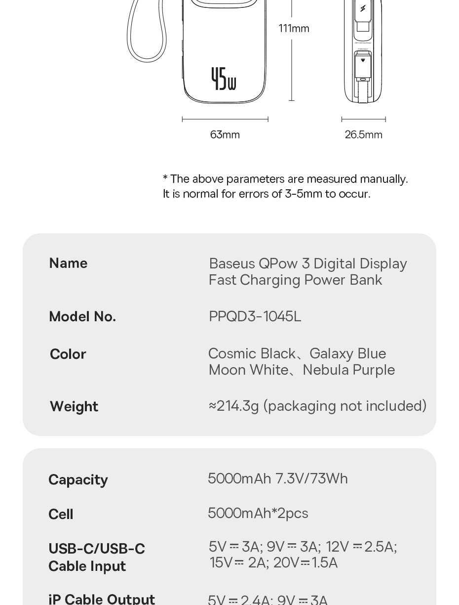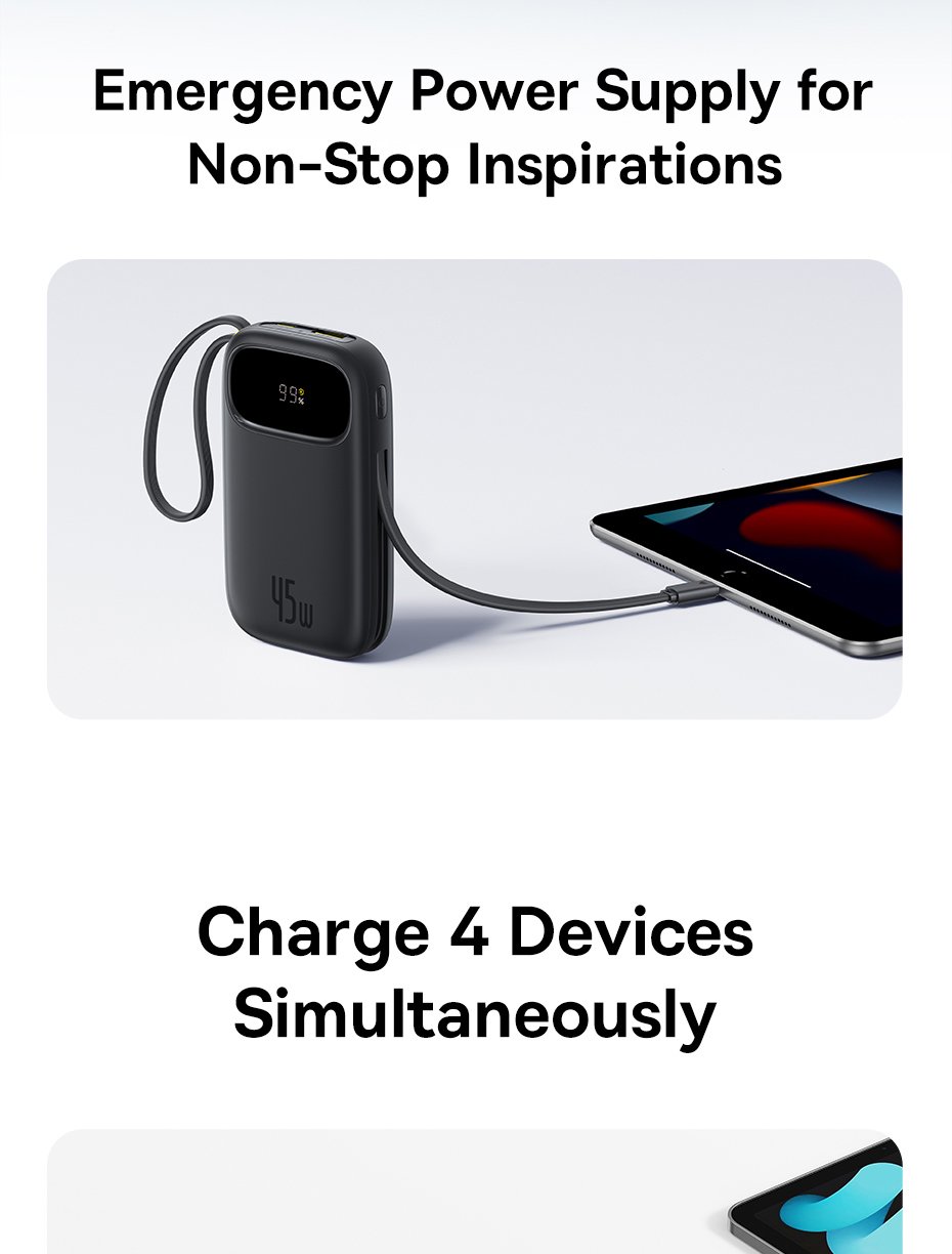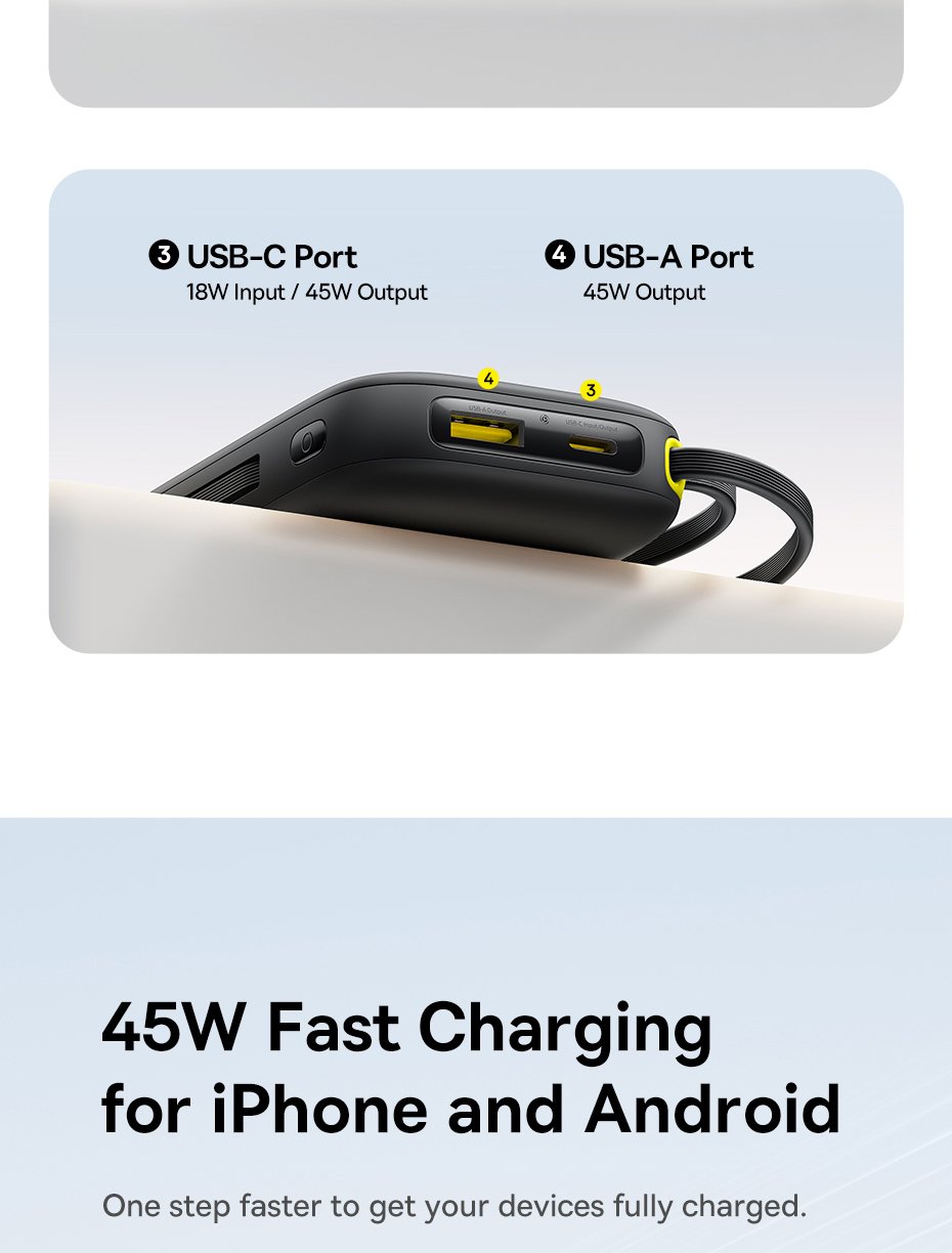 Pin Dự Phòng Baseus EnerFill FC31 QPow 3 – Sạc Nhanh 45W, Hai Phiên Bản Dung Lượng, Cáp Tích Hợp Tiện Lợi