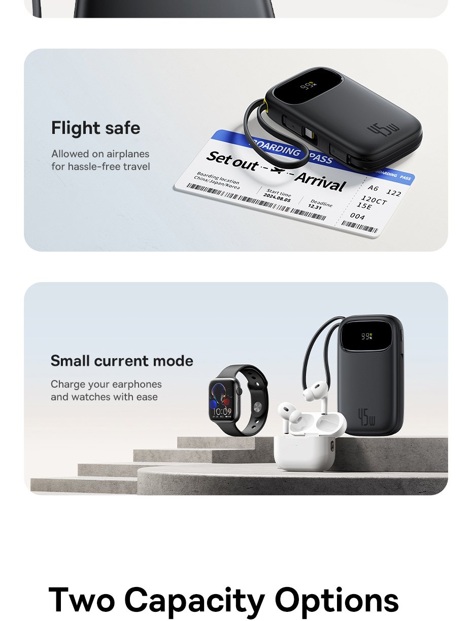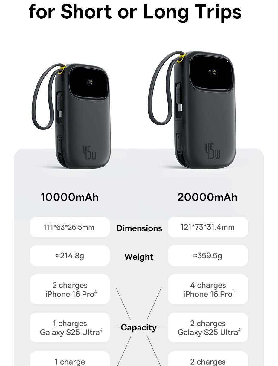 Tùy theo nhu cầu sử dụng, Baseus phát hành 2 phiên bản dung lượng khác nhau: