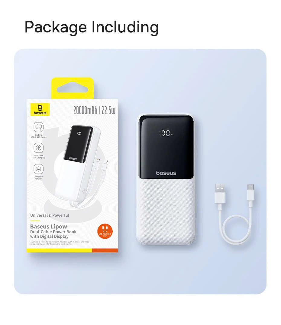 Trong thời đại công nghệ hiện nay, việc sở hữu một pin sạc dự phòng chất lượng là điều cần thiết để đảm bảo thiết bị di động của bạn luôn đầy pin, sẵn sàng hoạt động mọi lúc mọi nơi. Trong số rất nhiều dòng sản phẩm trên thị trường, Baseus Lipow Dual-Cable 20000mAh 22.5W nổi bật nhờ thiết kế tiện dụng, dung lượng lớn và công nghệ sạc nhanh tiên tiến.